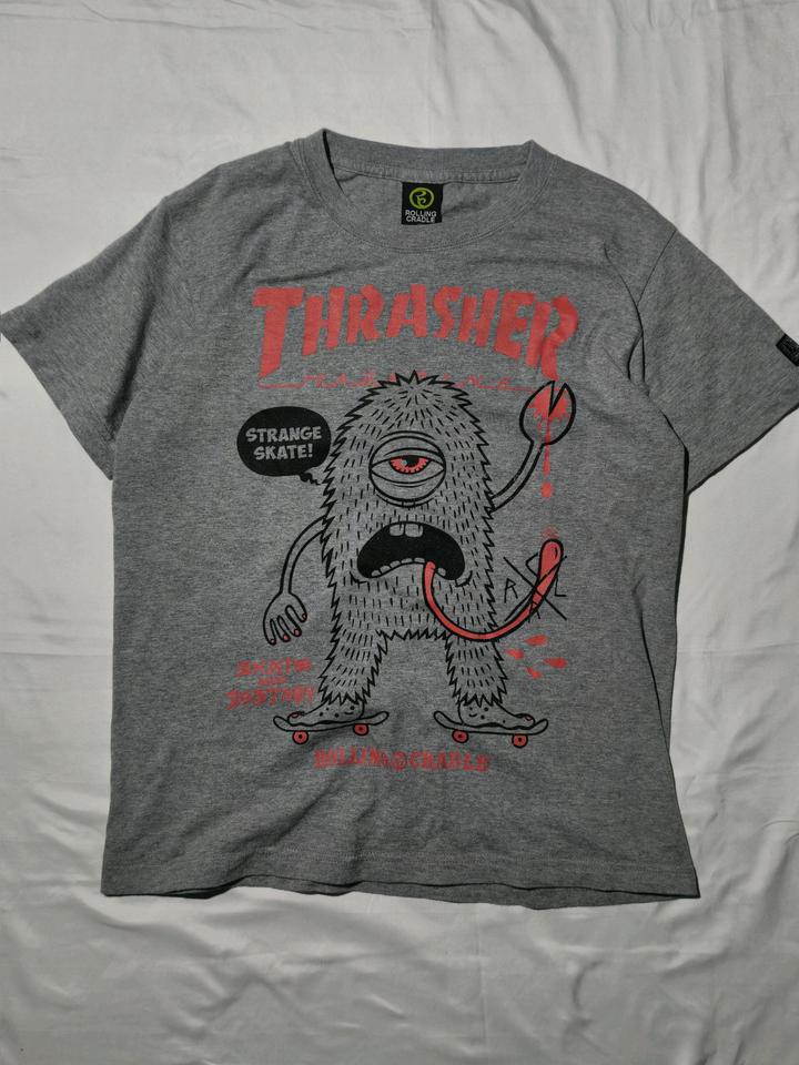 Футболка от бренда thrasher в коллаборации с rolling cradle Редкая коллаба для японского рынка выпущенная ограниченным тиражом Размер S-M Артикул: 574638