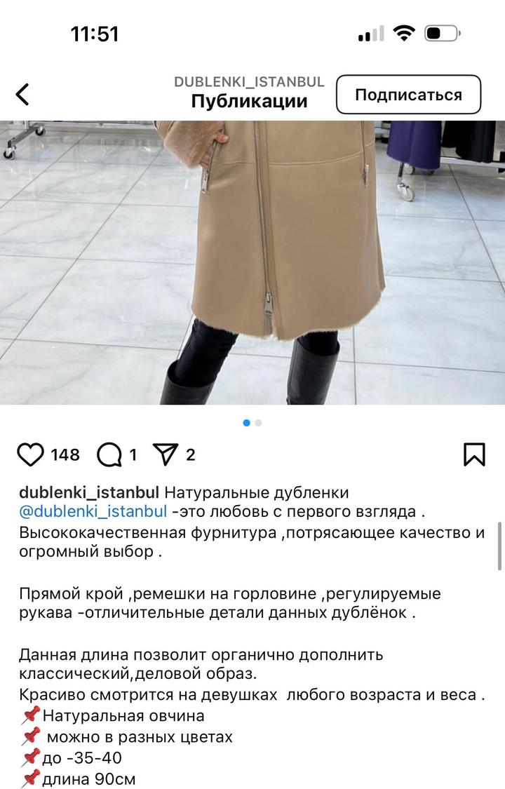 •Настоящая качественная кожа и мех овчины •Покрытие «силка» защищает дубленку от вредных воздействий внешней среды, не позволяет пыли и грязи впитываться в поверхность •Высококачественная фурнитура из никеля •Дубленка прямого кроя, Без капюшона •Ремешки на горловине и рукавах •Мягкая, теплая до -35-40 градусов •Длина 90 см Цвет как на фото Дублёнку заказала прямиком из Турции - Стамбул Фасон мне не подошел Могу так же скинуть полное видео дубленки в вотсап Артикул: 574679