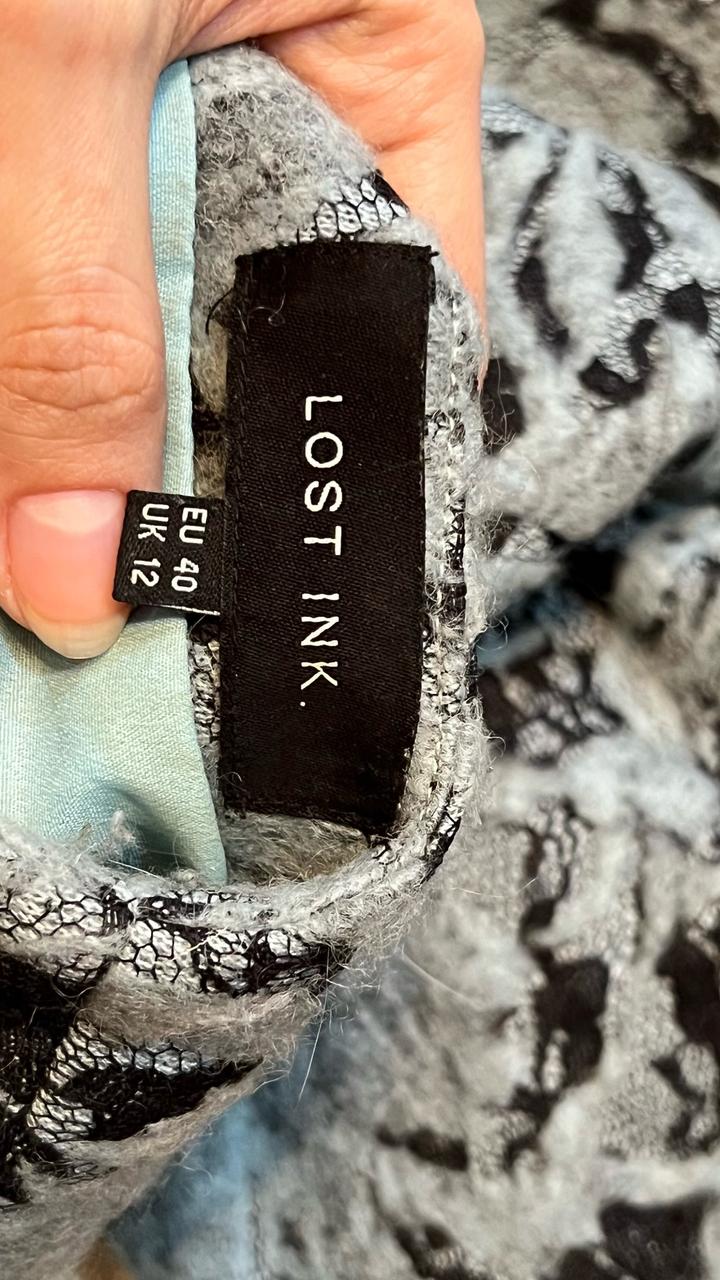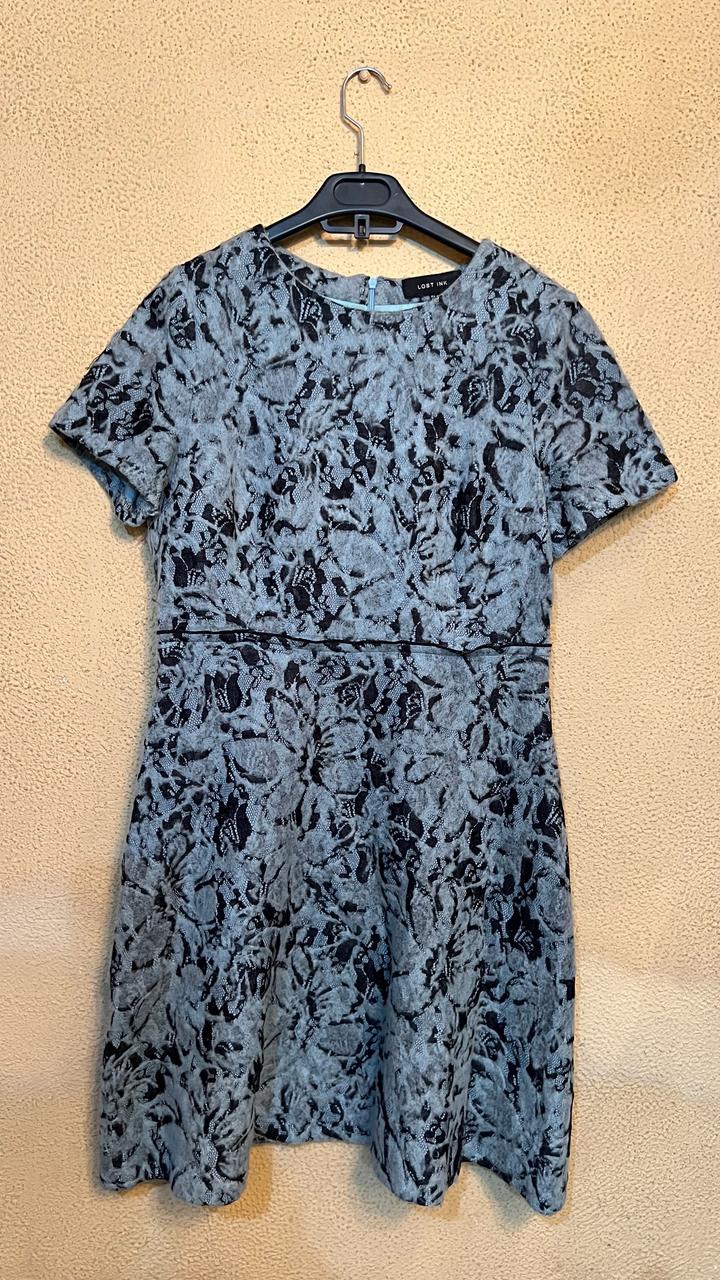 Зимнее платье голубого цвета с черным кружевом Размер 40 Артикул: 574686
