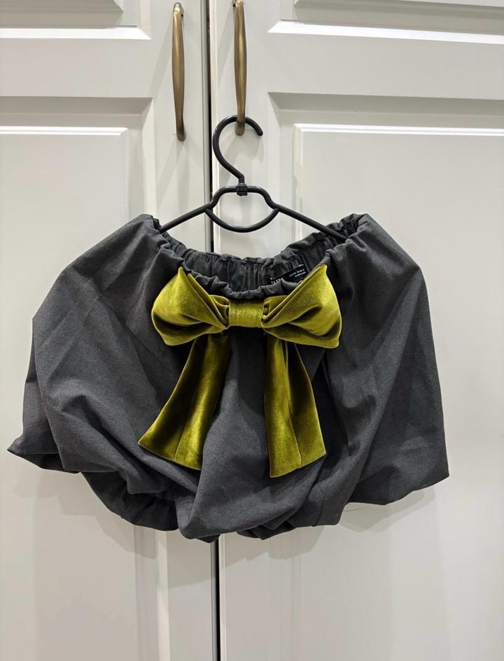 Глубокий серый цвет + бархатный бант оливкового оттенка смотрится дорого и необычно. Свободная посадка, красиво держит форму, подчёркивает плечи и создаёт эффектный силуэт. Артикул: 574750