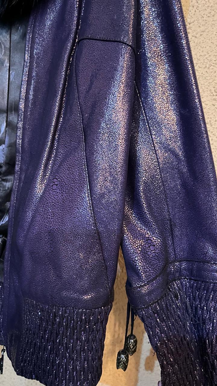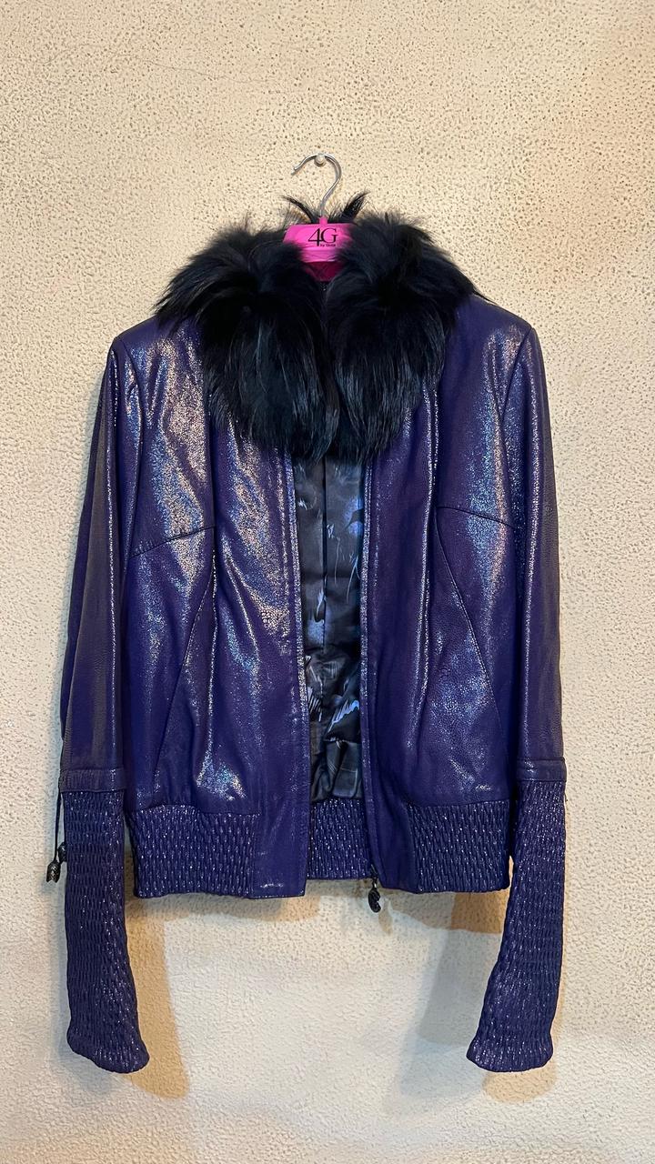 Натуральная кожа, фиолетовая куртка Мех черный, густой Размер 38 (EUR)/44 (RUS) Артикул: 574760