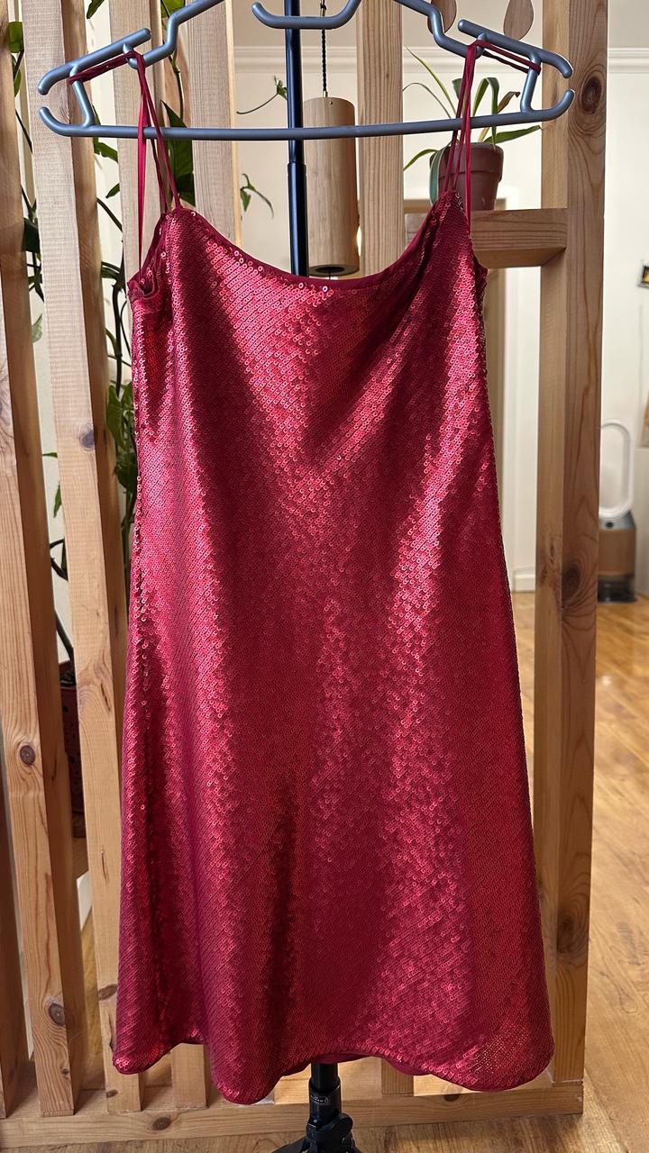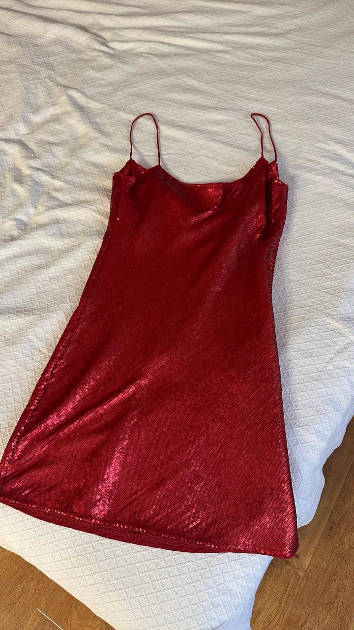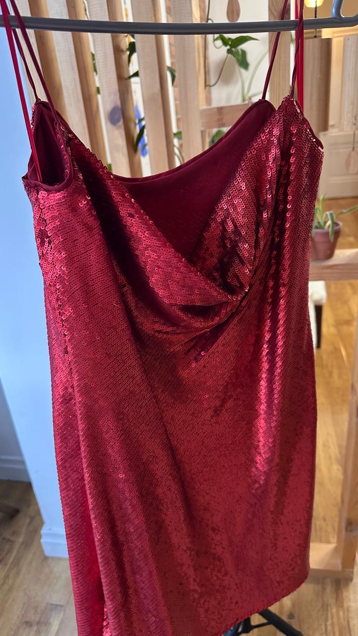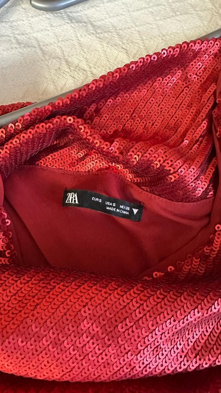 Красное платье в пайетках Zara. Длина 67 Длина с лямками 86 Ширина 37 Артикул: 574801