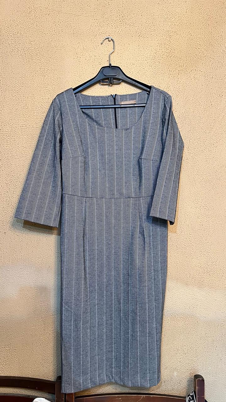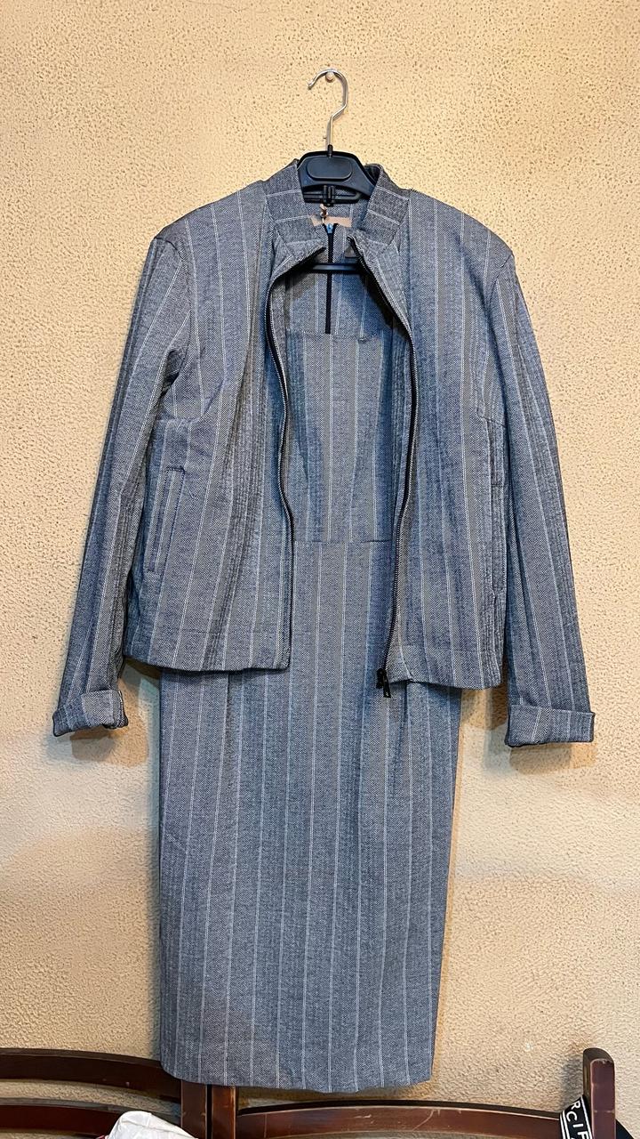 Комплект: пиджак (46), брюки (44), платье (46) Серый в зигзаг, полоску Бренд Faberlic, коллекция BURMATIKOV Артикул: 574808