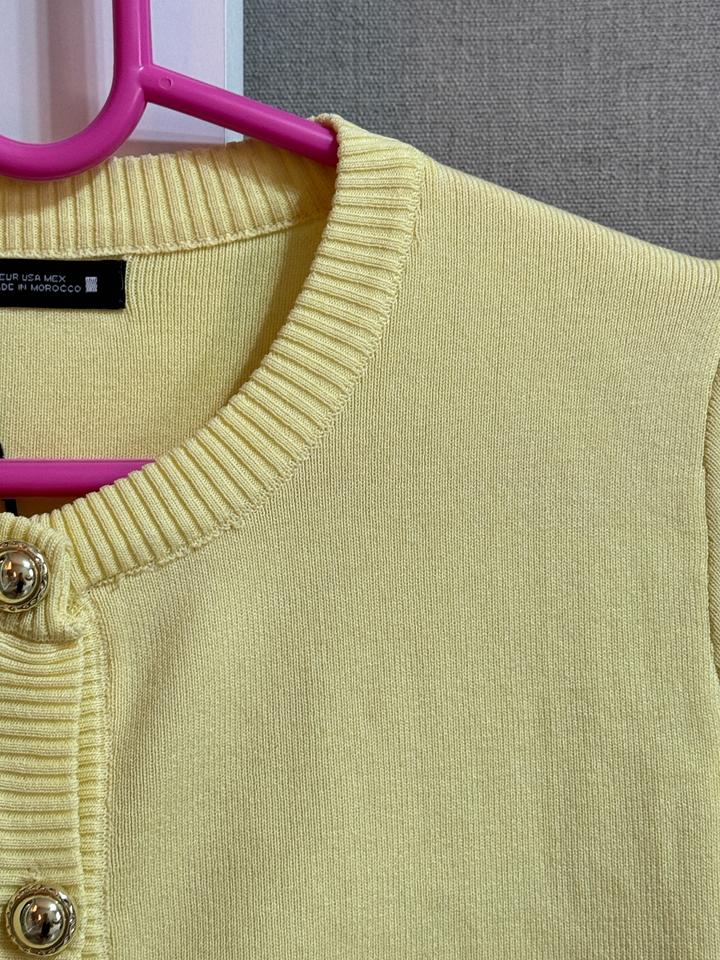 Яркий и уютный кардиган от ZARA — идеальный акцент для стильного образа ✨ ✔️ Насыщенный жёлтый цвет — поднимает настроение и освежает внешний вид ✔️ Мягкий и приятный к телу материал ✔️ Свободная посадка — удобно и современно ✔️ Лёгко комбинируется с базовыми вещами 💫 Отлично смотрится с: — джинсами — брюками — платьями Подойдёт: — на каждый день — на прогулки — в прохладную погоду Артикул: 574982