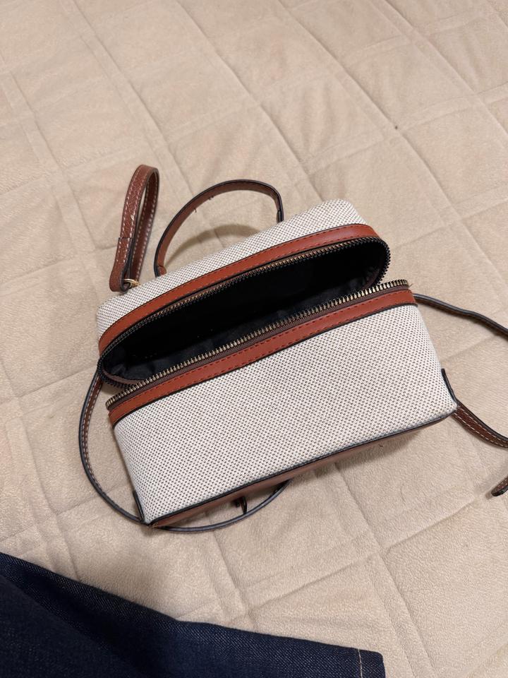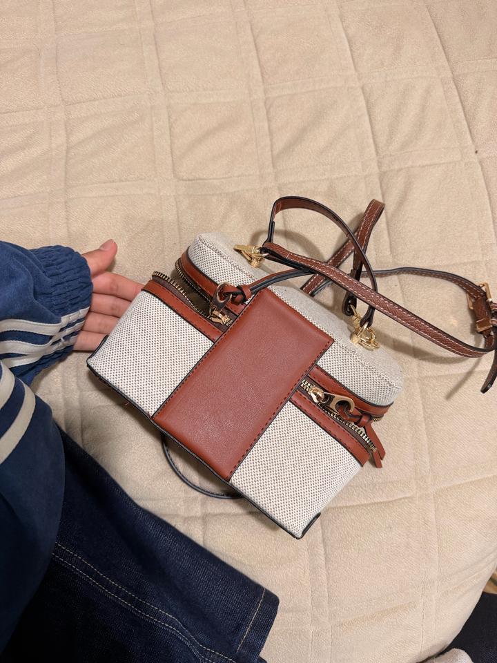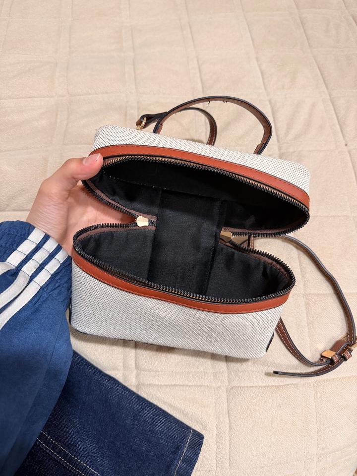 Стильная компактная сумка в бежево-коричневых оттенках. Выполнена из плотного текстиля с кожаными вставками, аккуратная фурнитура. Удобная двойная молния и внутреннее отделение с разделителем. Есть ручка и длинный ремешок - можно носить в руке или через плечо. Отлично подойдёт на каждый день. Артикул: 575030