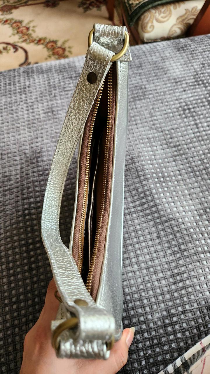 Продам сумочку натуральная зернистая кожа серебряного цвета. Ручная работа из Вьетнама Внутри 2 отделения, одно на замке Артикул: 575061