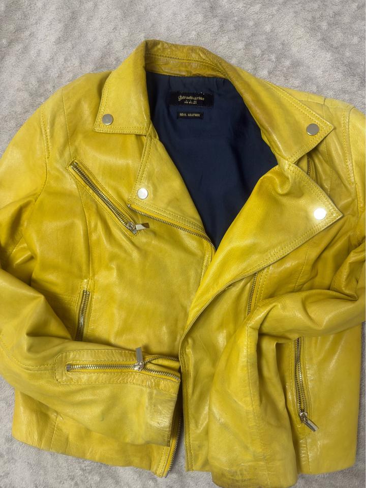 Кожанная куртка желтого цвета натуральная кожа Артикул: 575080