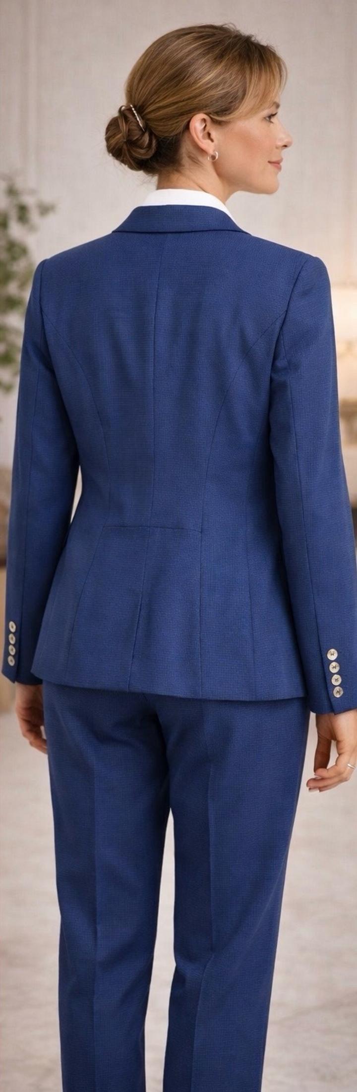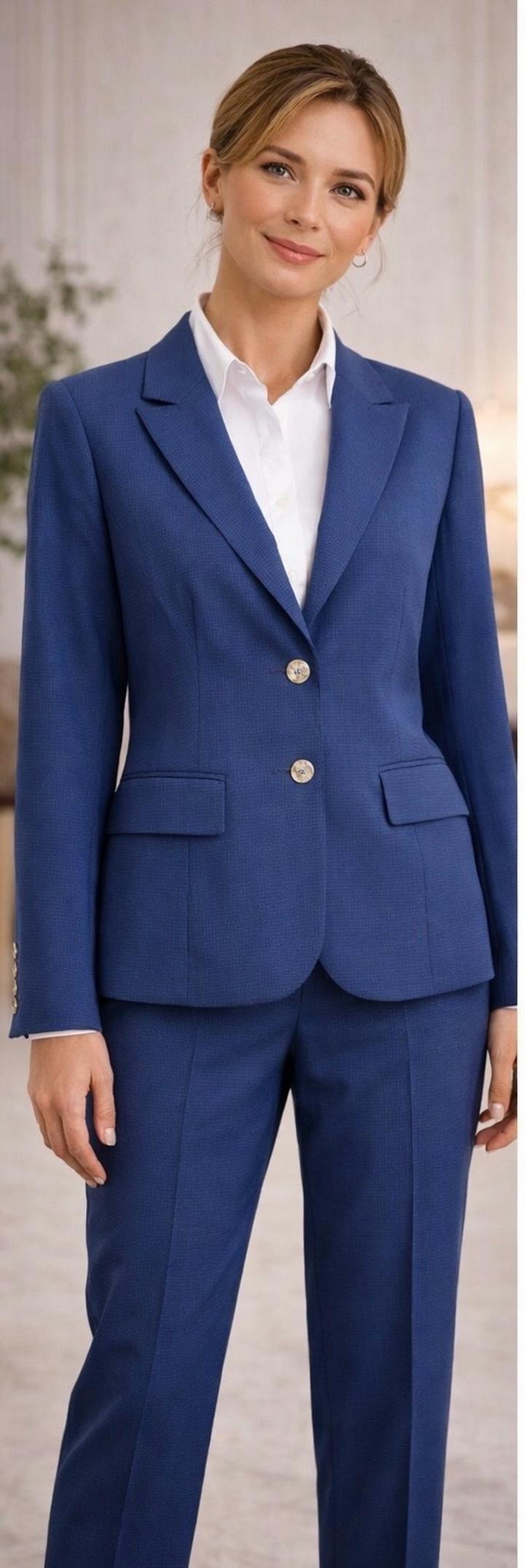 Элегантный брючный костюм в благородном синем оттенке — идеальный вариант для делового гардероба. Смотрится дорого, аккуратно и всегда актуально. Pierre Cardin (Paris) французская классика, качество и стиль Собирает фигуру, делает образ стройным и элегантным — выглядит дороже своей цены Брендовый костюм — быстро найдёт свою хозяйку Артикул: 575123
