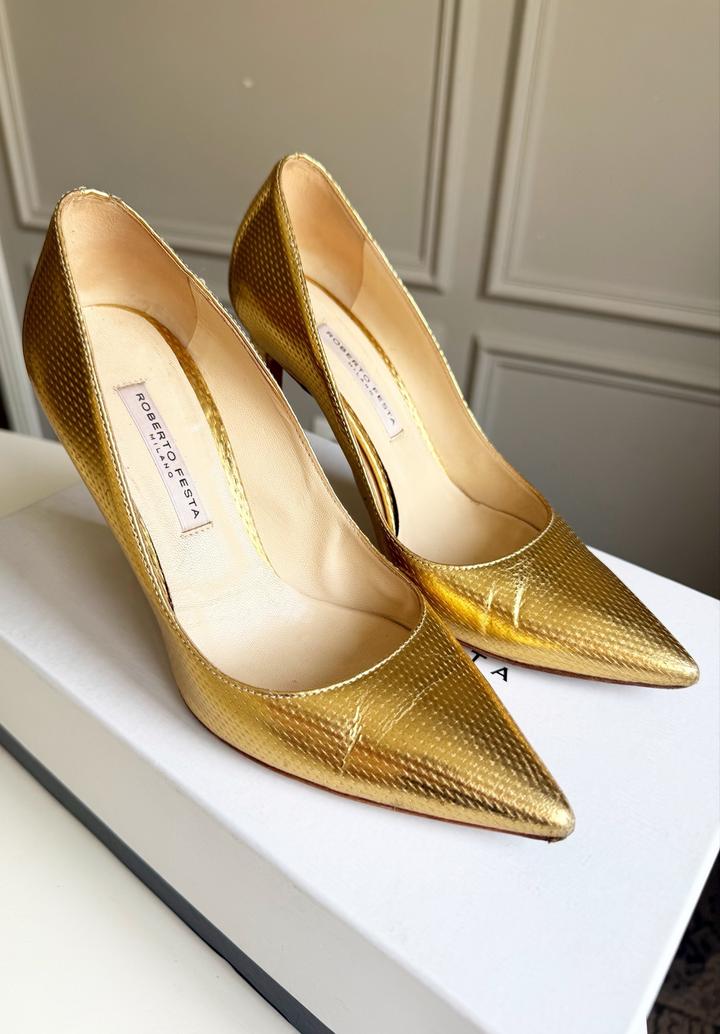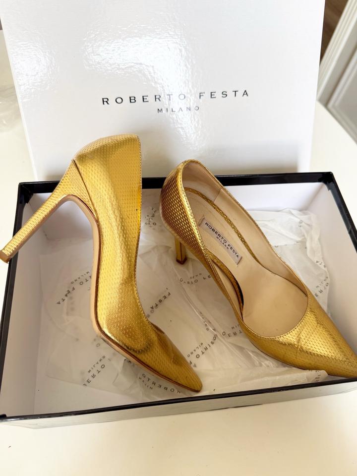 Туфли итальянского бренда Roberta Festa в золотистом оттенке Классическая модель - подойдет и акцентирует любой образ! Очень удобная колодка, ноги не устают совсем! Состояние: хорошее Размер: 36-36,5 Материал: кожа Цена: -85% Артикул: 575141