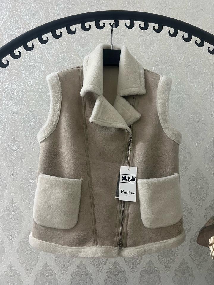 Стильный жилет , Оверсайз . Новый , с овчиной внутри. С объемным свитером 🔥🔥будет смотреться просто бомюически . А как теплоооооо…. Артикул: 575174