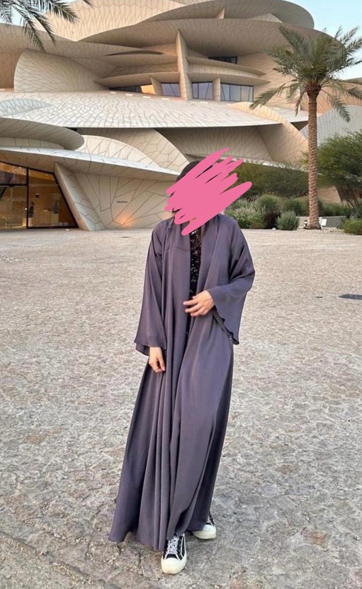 Абайка купленная в Дохе, в комплекте: абайка, платье, платок и пояс. Размер XS-M, купили для фоток, надели только абайку и платок, и то платок на шее висел. Цвет: сиреневый Артикул: 575188