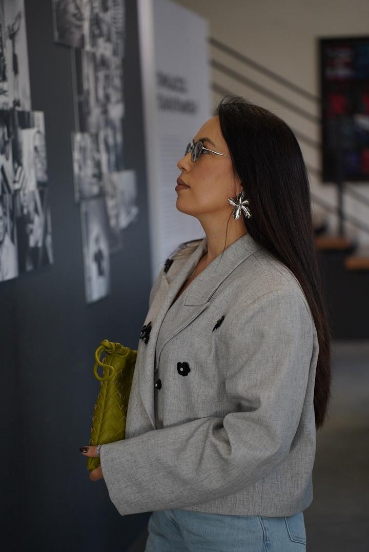 Укороченный пиджак на подкладе с вышивкой прямого кроя Артикул: 575196