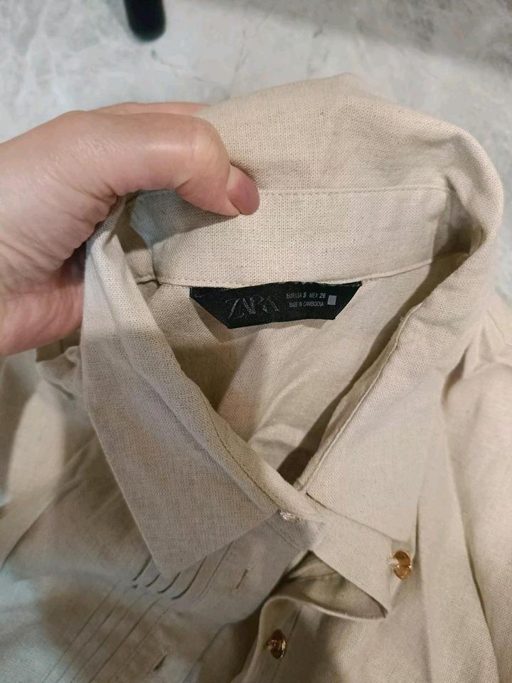 Надевала 1 раз, покупала в Zara за 35 тыс. Размер S, подойдёт и на М. 55% лен, 45% вискоза. Артикул: 575200