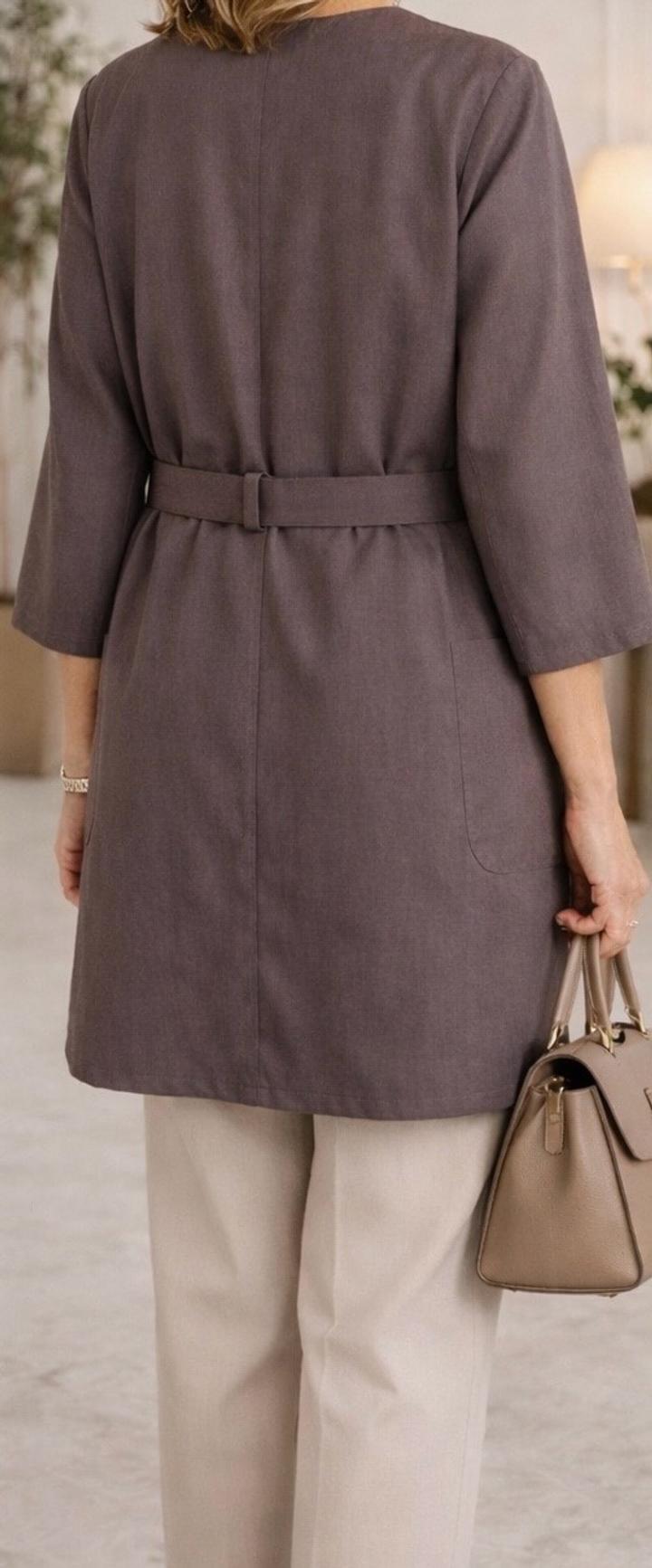 Элегантный тренч свободного кроя в глубоком шоколадном оттенке — смотрится дорого, минималистично и всегда актуально. Особенности: - красивый благородный цвет (коричневый) - прямой, свободный силуэт — скрывает нюансы фигуры - длина ниже бедра - рукав 3/4 — удобно и стильно - аккуратный ворот без лишних деталей (минимализм) - удобные карманы Артикул: 575244