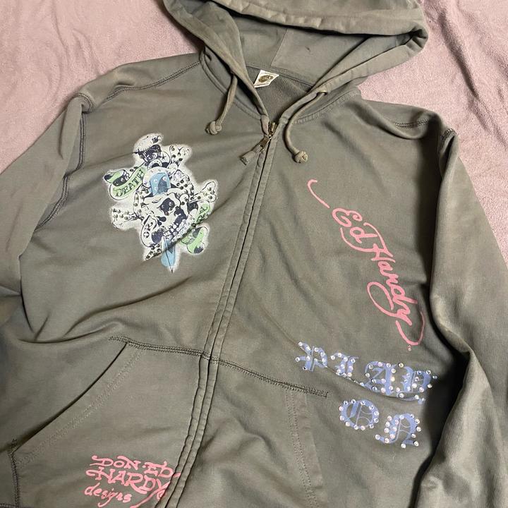 Ed Hardy Zip Hoodie Размер:M-L Состояние:9/10 Много страз,на спине логотип,хорошая зипка на повседнев ❗️Цена:20000 тенге❗️ Артикул: 575294