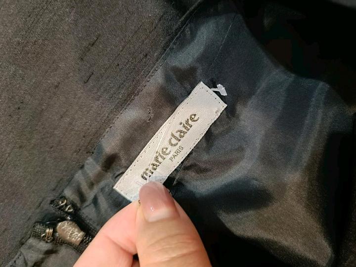 Платье от французского бренда Marie Claire, размер S/M. Made in Japan. Обратить внимание на текстуру ткани, видны характерные горизонтальные неровности, которые специалисты называют эффектом «слаб» (slub texture)( нити разной толщины, чтоб придать ткани выразительность). Артикул: 575334