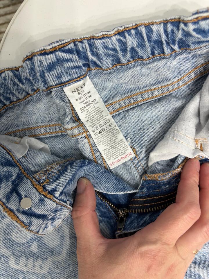 Крутые джинсы для мальчика от фирмы Next. Необычной расцветки, ткань плотная котон, прямая модель. На рост до 120. В отличном состоянии. Артикул: 575373
