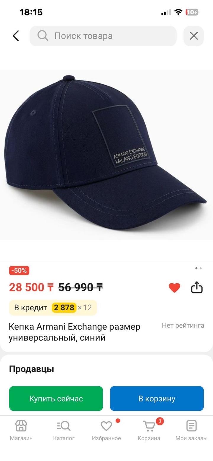 Кепка унисекс Армани, состояние идеал, не ношеная Артикул: 575375