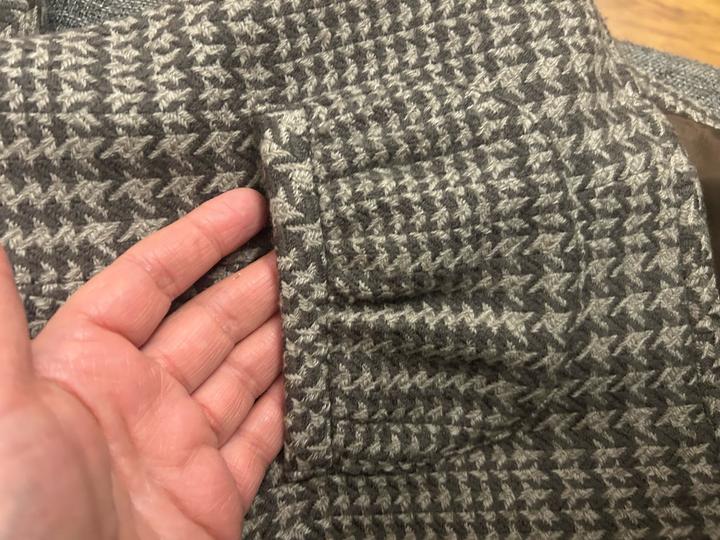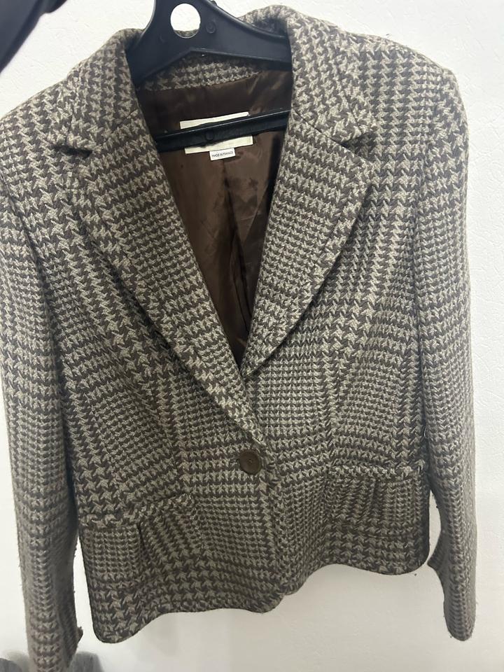 Пиджак шерстяной, очень удобный и приятный, принт- гусиная лапка , с округлыми карманами. Произошло Франции Артикул: 575390