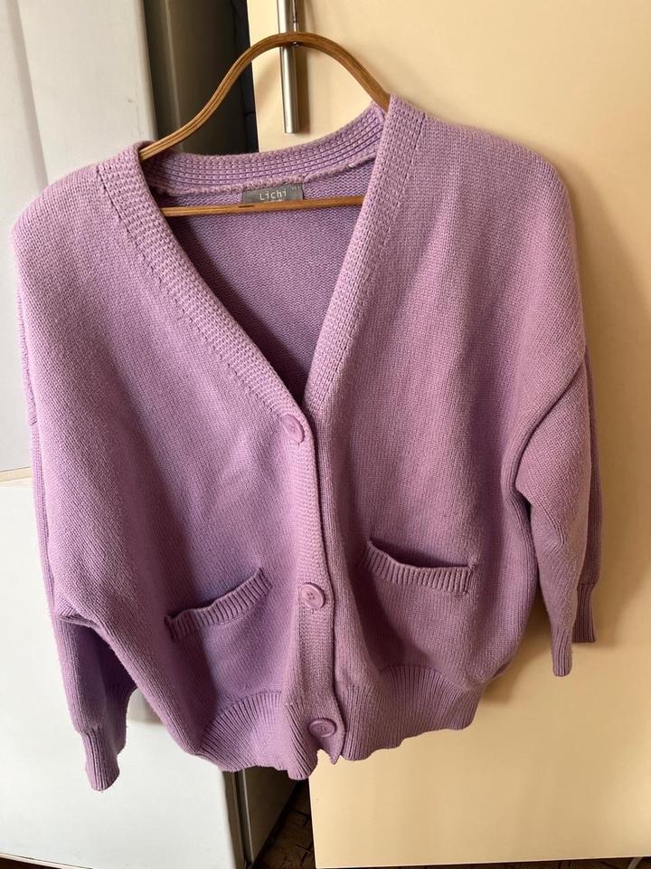 Сиреневый цвет нежного оттенка кардиган от личи в идеальном состоянии очень добротная плотная вязка б у очень редко куплен за 30 без пятен , катышков и дефектов Артикул: 575408