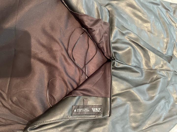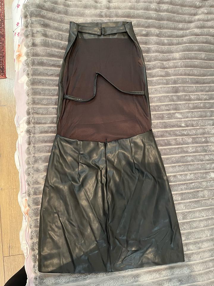 Черное платье из кожи. Носила только 1 раз. Чистое, в идеальном состоянии. Размер S. Сзади открытая спина, есть замочки сзади шеи и спины. Артикул: 575413