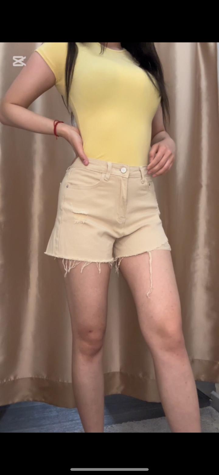 Джинсовые шорты в стильном исполнении🤩 в бежевом цвете, с карманами. Джинса отличного качества🫶🏻размер 26 на 44. Цена 5000тг💣 Артикул: 575424