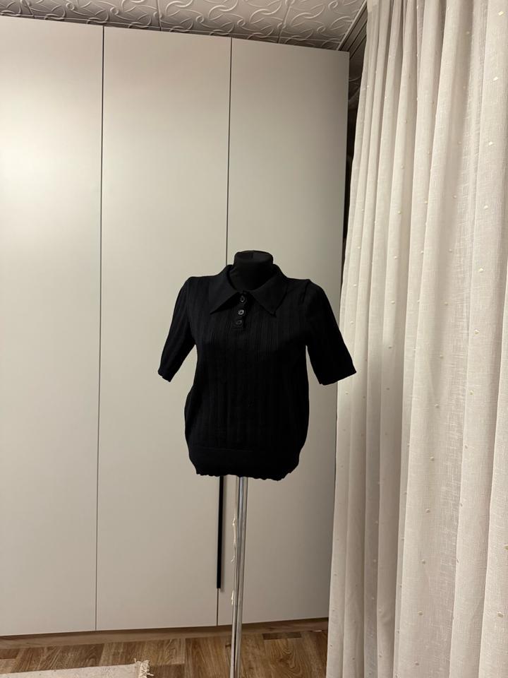 Тенниска черная Качество очень хорошее Одевала всего лишь раз два Чуть есть зацепка но можно изнутри закрутить а так новая почти Размер подойдет на С,М Артикул: 575428