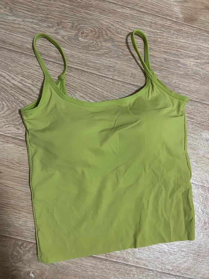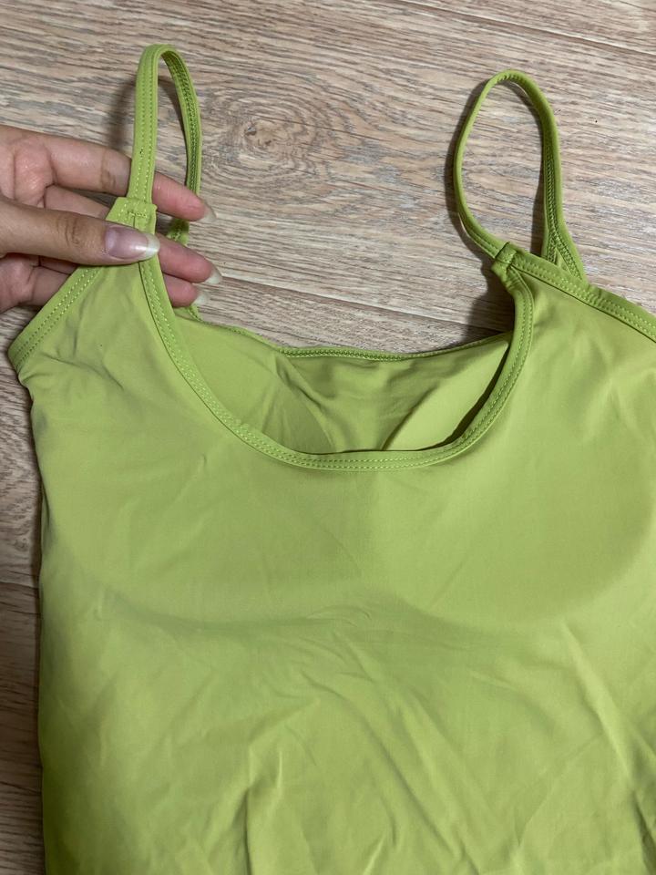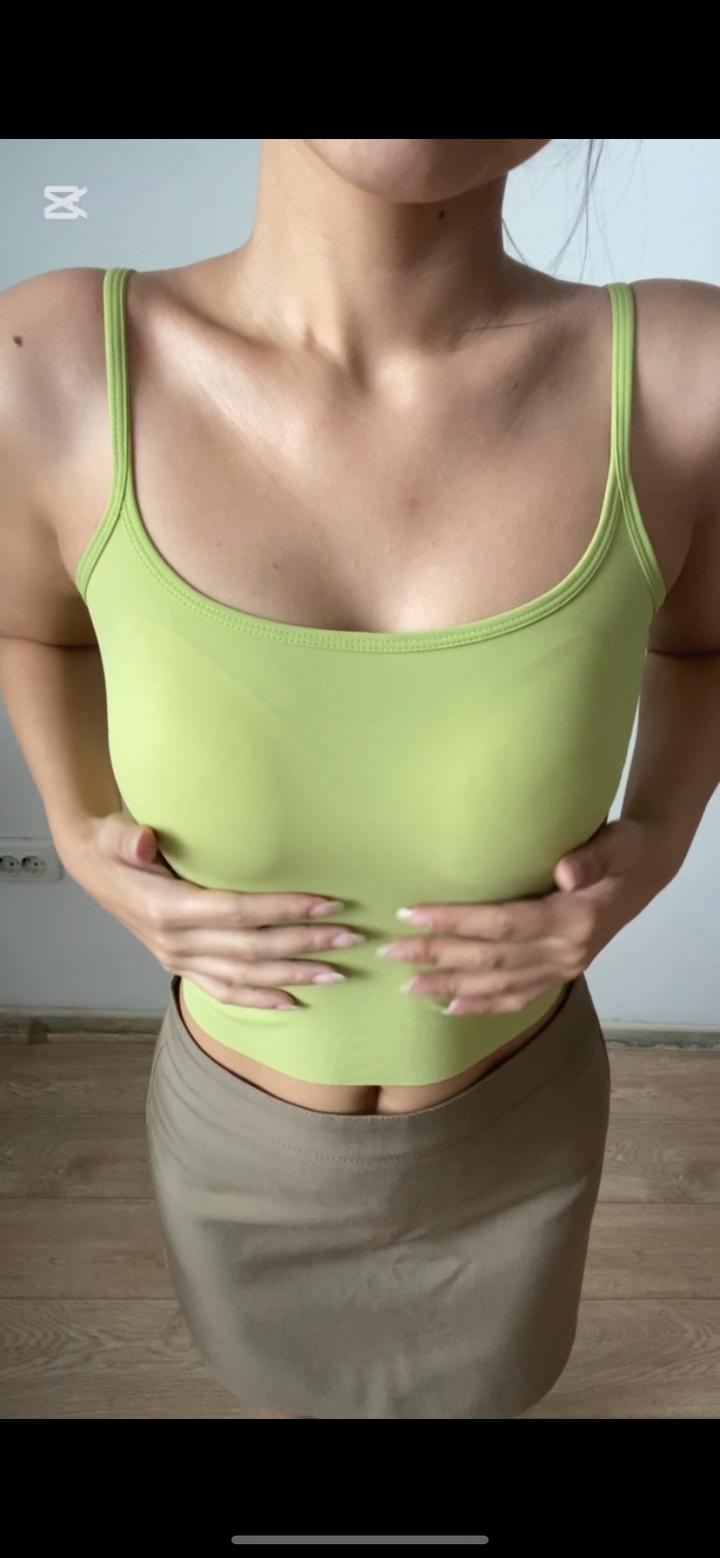 Топ с чашами под любой образ🔥комфортный и приятные в носке🤯 в красивой спиной. Можно носить без нижнего белья, они уже с чашками. Красивый салатовый оттенок! Размер 42 и возможно на 44. Цена 3000тг💣 Артикул: 575456
