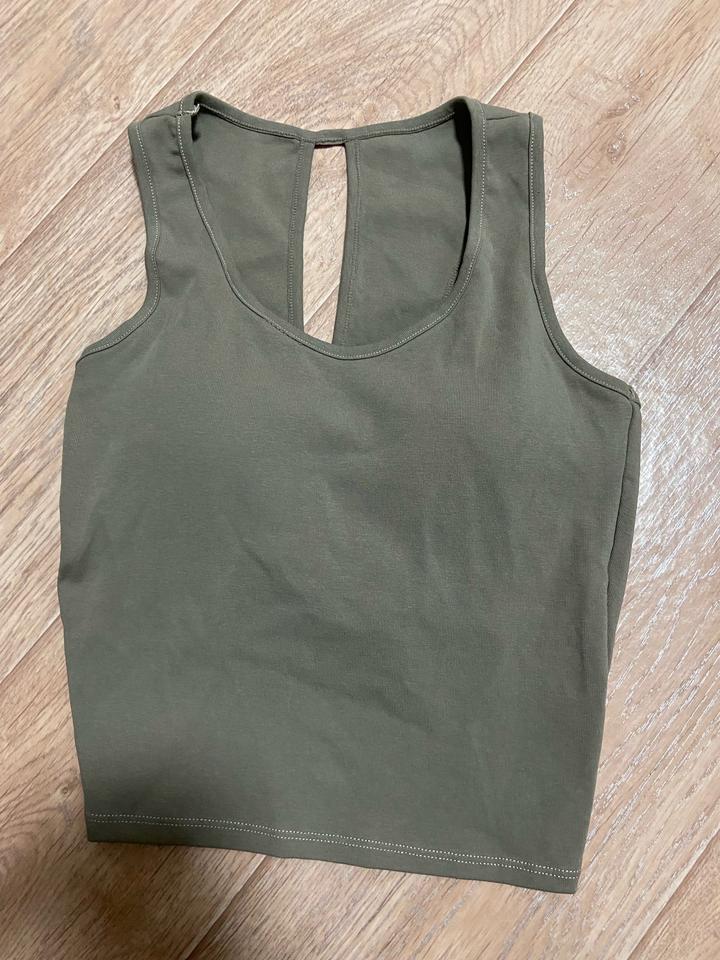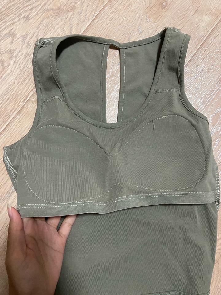 Топ с чашами под любой образ🔥комфортный и приятный в носке🤯 с красивой спиной. Можно носить без нижнего белья, они уже с чашками. В хаки цвете! (Если нужно фото как он выглядит в носке пишите). Размер единый 42/46. Цена 3000тг💣 Артикул: 575494