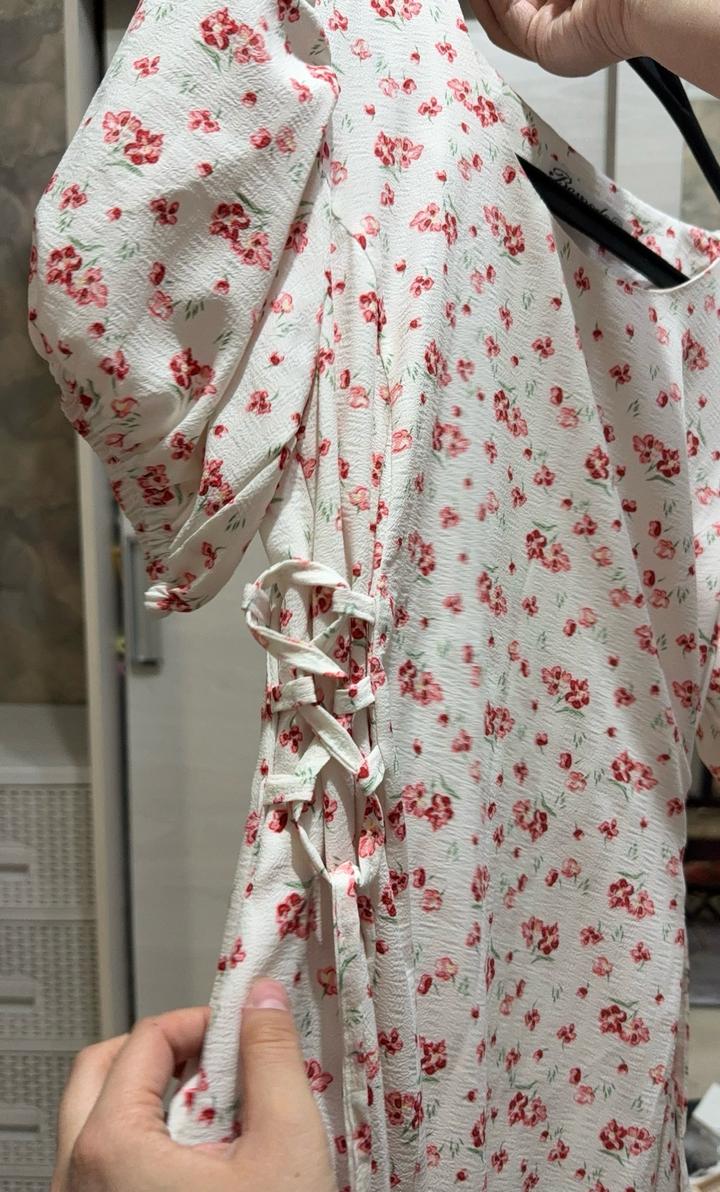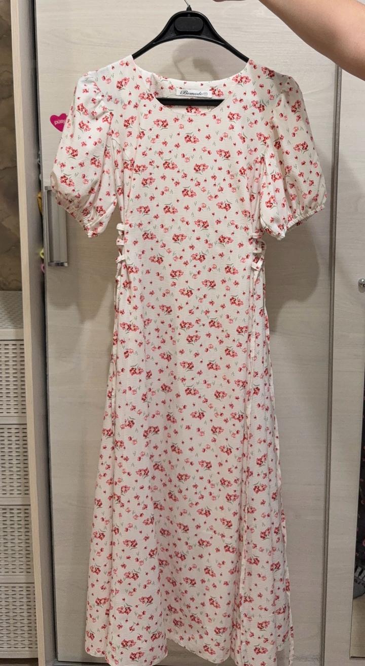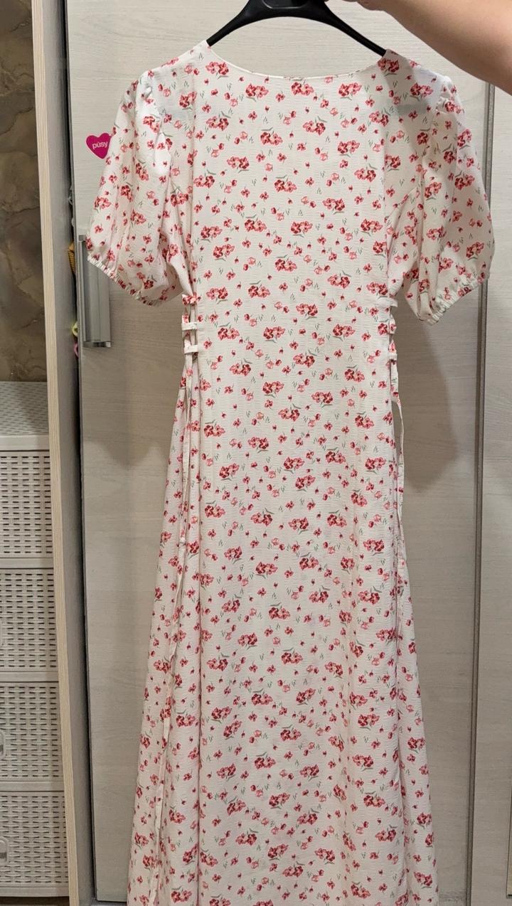 Легкое летнее платье в нежном розовом цвете с цветочным принтом,длина миди Артикул: 575621