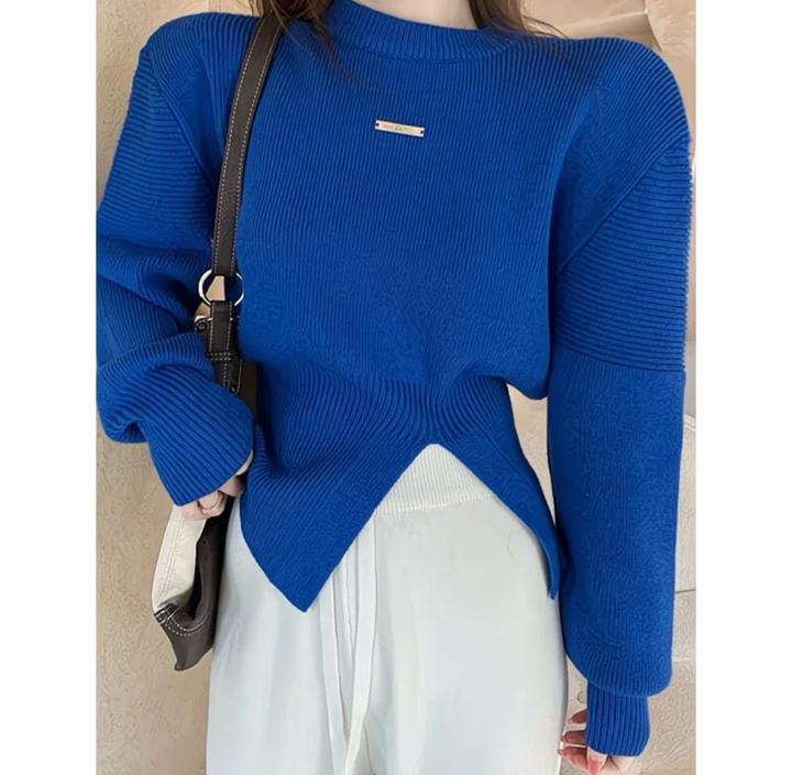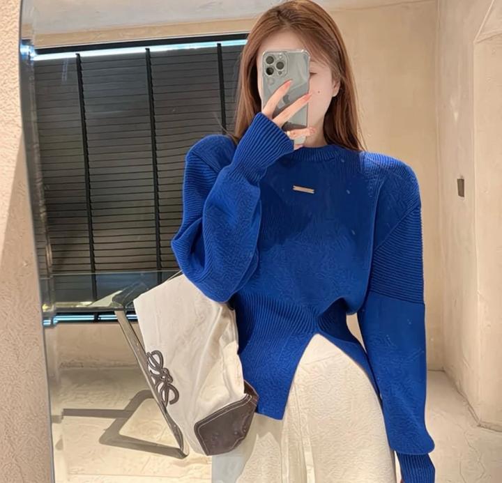 Синий укороченный свитер, приталенный, дизайнерский, премиальный стильS/M