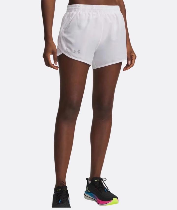 женским беговым шортам Under Armour UA Fly By 3'' Shorts.Модель: UA Fly By 3'' Shorts (длина по внутреннему шву — 3 дюйма, около +7### ### ## ##кам расположены сетчатые вставки для дополнительного притока воздуха. Артикул: 575712