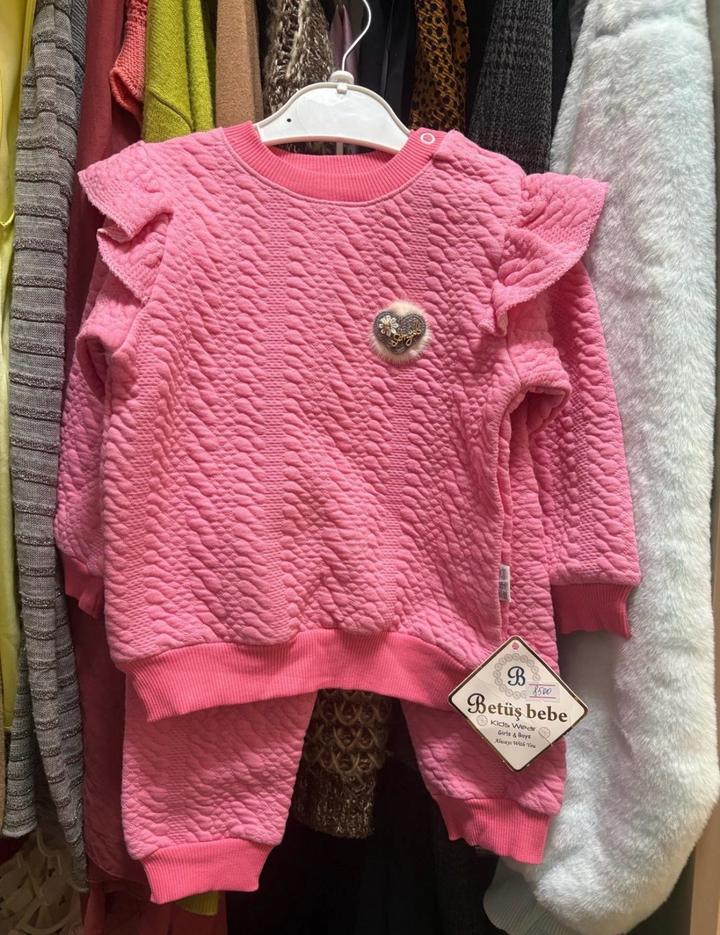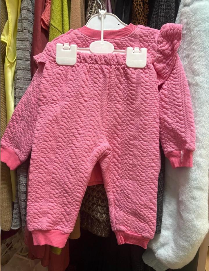 Розовый костюм свитшот и штанишки. На весну или прохладное лето👍🏻размер пишут 12-18 месяцев. На 80-86 см думаю будет хорошо. Артикул: 575735