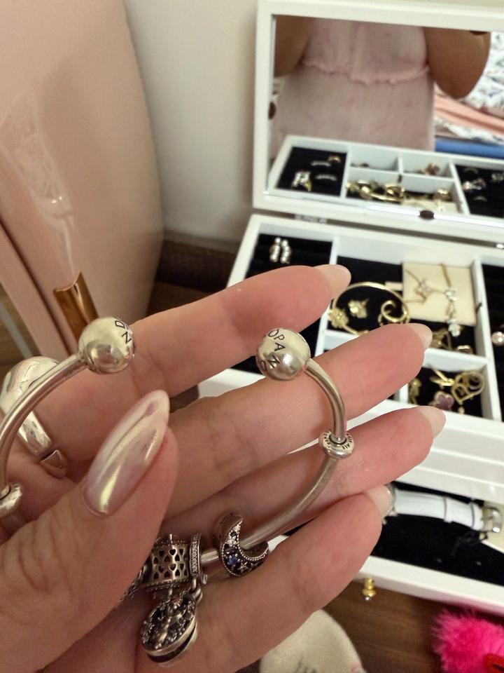 Браслет от Pandora. И 5 шармов в подарок(2 оригинальных шарма от Pandora), 1 оригинальный от фирмы Beuer, 2 неоригинальных, но из серебра) размер 2. Артикул: 575827