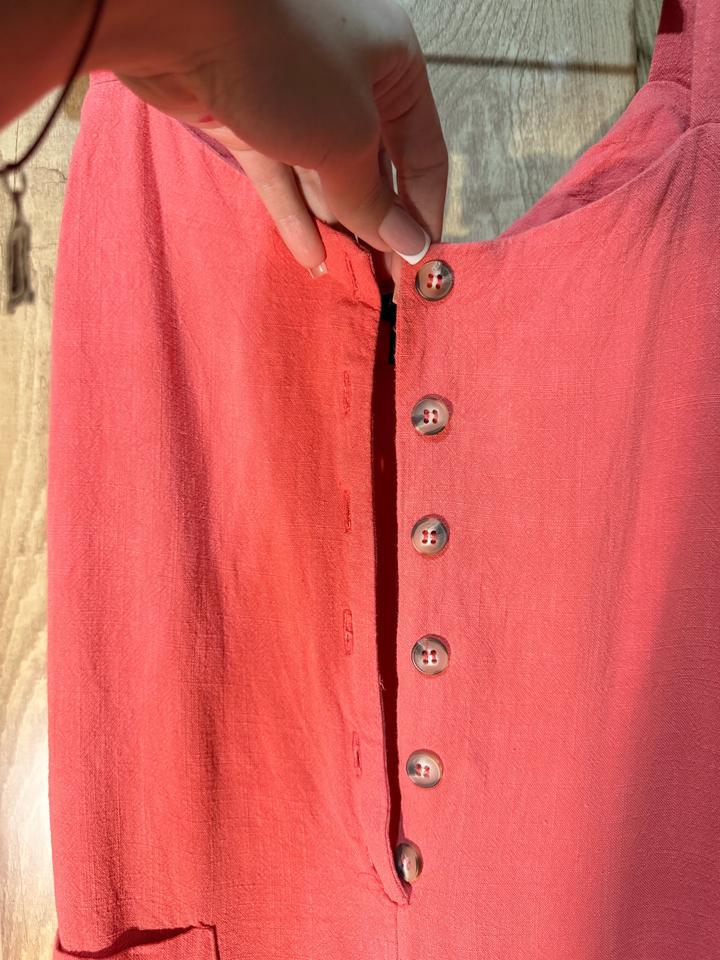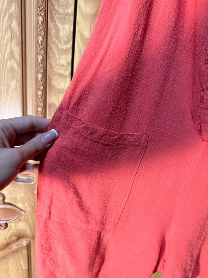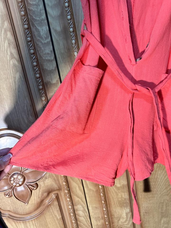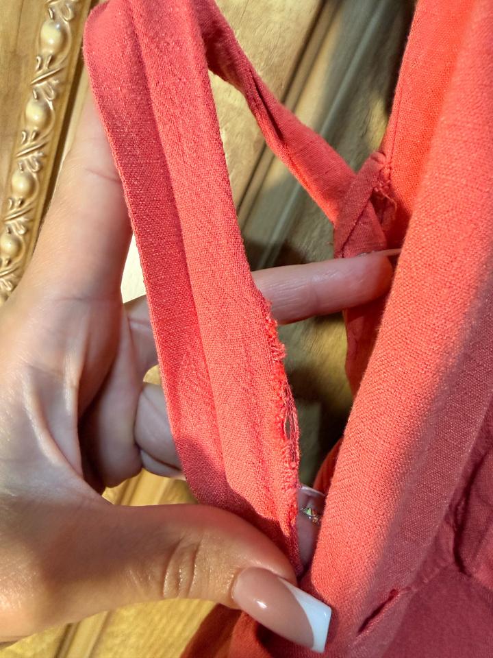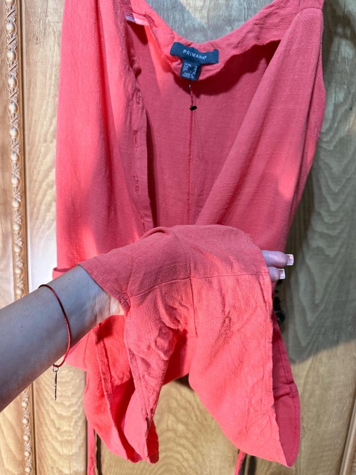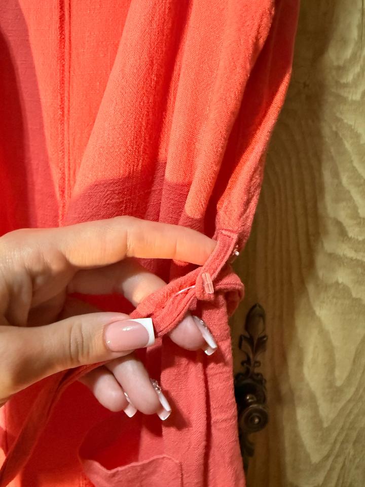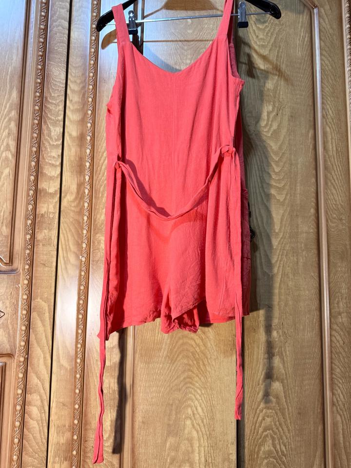 Лёгкий летний комбинезон в нежном персиковом оттенке — идеален на жару и повседневные образы. Ткань вискоза: дышащая, лёгкая, приятная к телу. Свободный крой, не сковывает движения, регулируется по талии. Размер S/M (EU 40). Есть пуговицы, карманы, короткая длина (показала на фото). Состояние почти новое — после 1 стирки. Небольшой нюанс на поясе (слегка разошёлся шов), в носке практически незаметен. Артикул: 575860