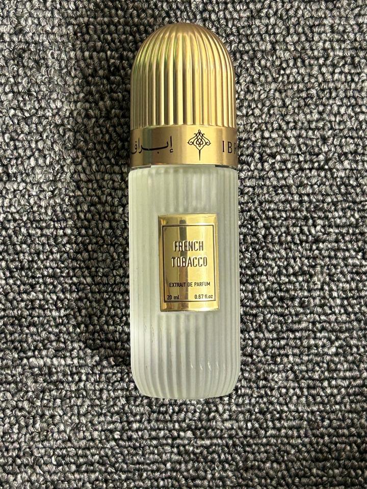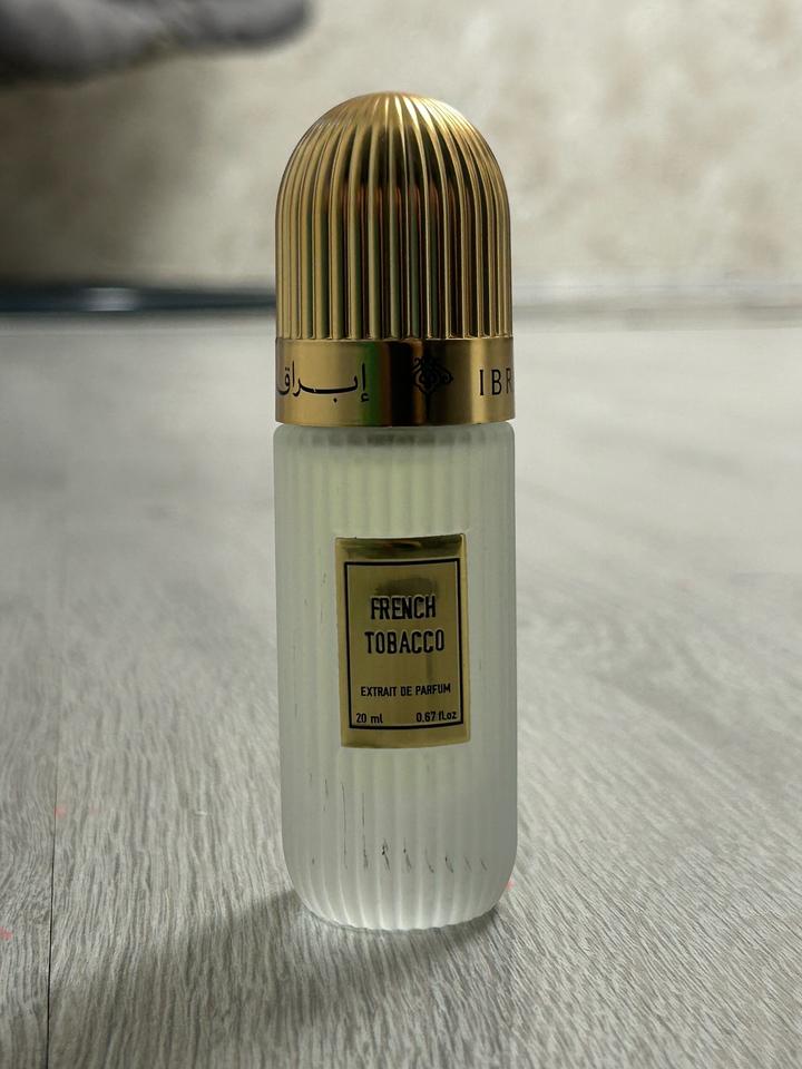 Парфюм french tobacco IBRAQ. 20 мл. Куплено в Медине. Новый. Пшикали всего 5-6 раз. Не понравился аромат. Артикул: 575877