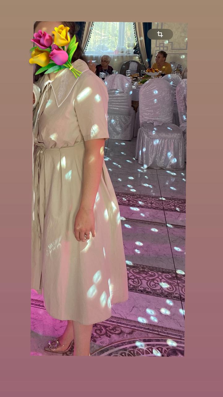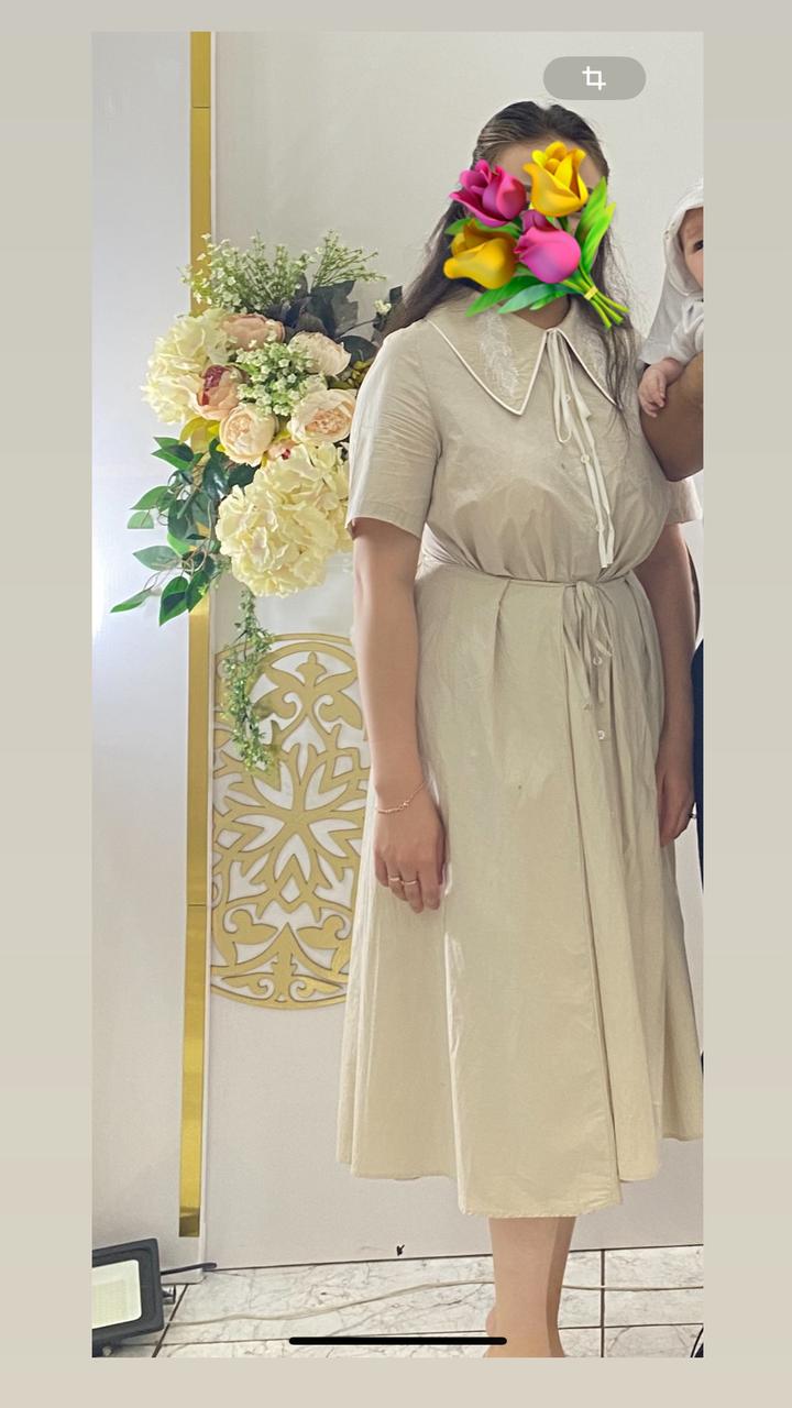 Платье в бежевом цвете, подойдет и на мероприятие и на каждый день На воротнике красиво вышытый рисунок, пояс можно завязывать и спереди и сзади. Артикул: 575903