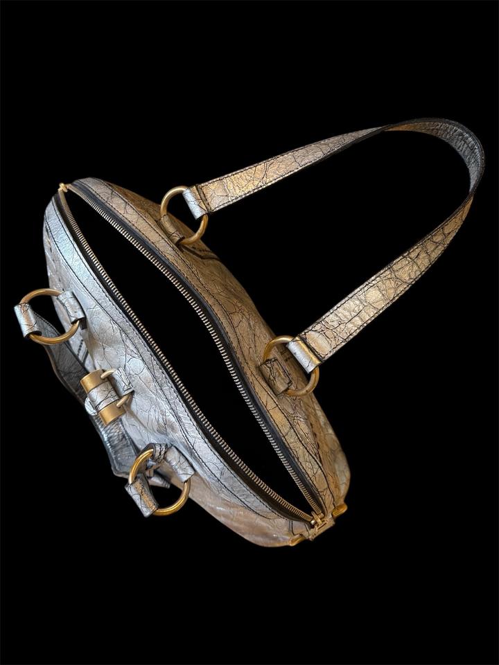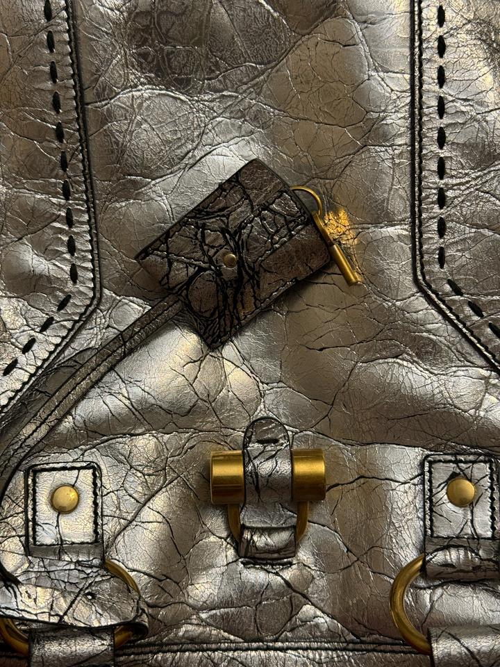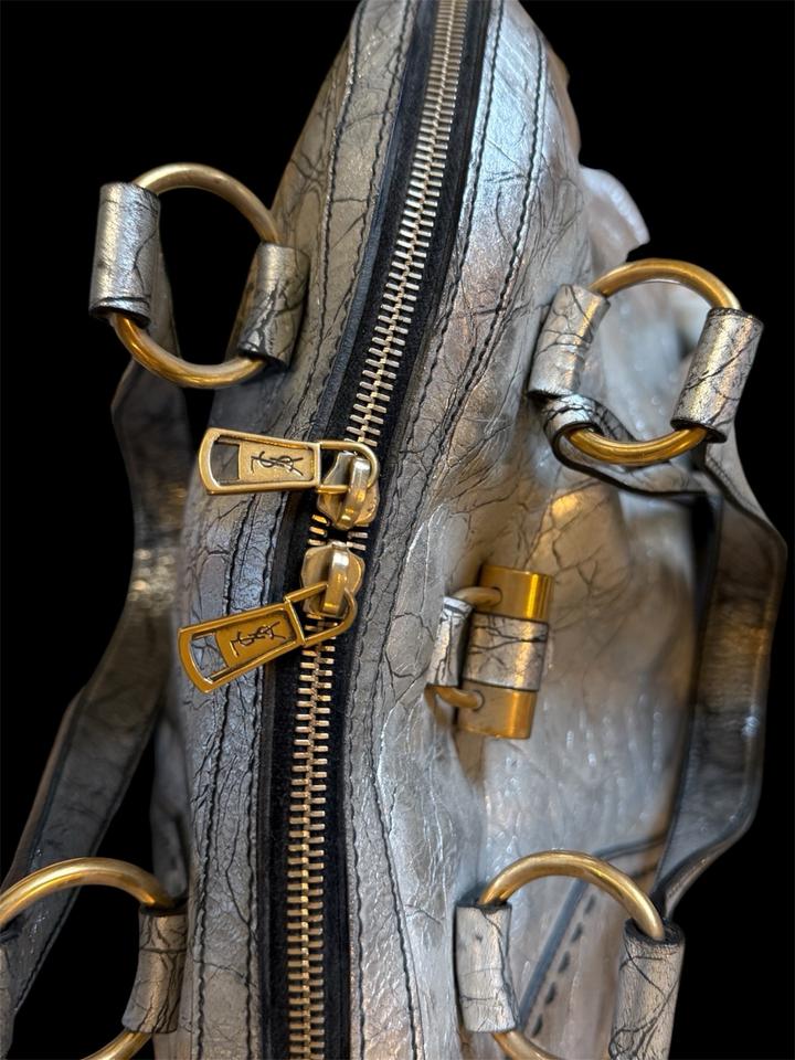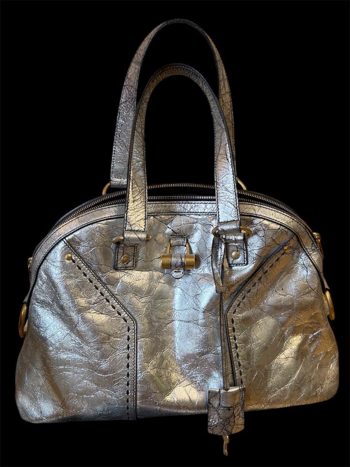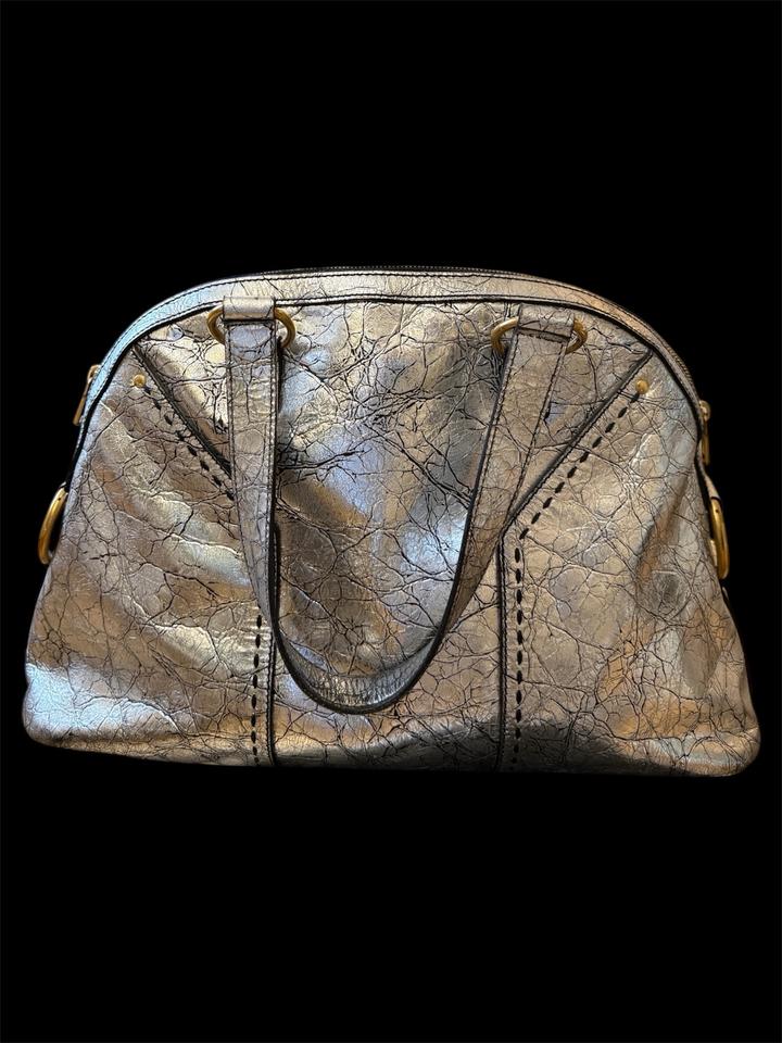 Muse Yves Saint Laurent в эффектном серебристом исполнении из кожи с эффектом «кракле». Эта модель является винтажной классикой бренда Идеальное состояние, без пыльника Authenticity Guarantee Артикул: 575923