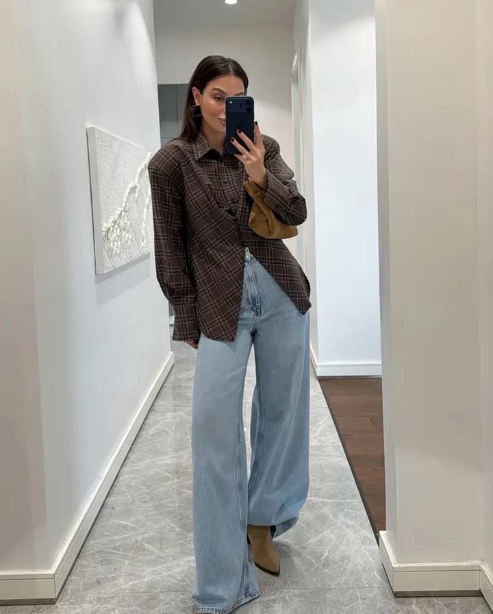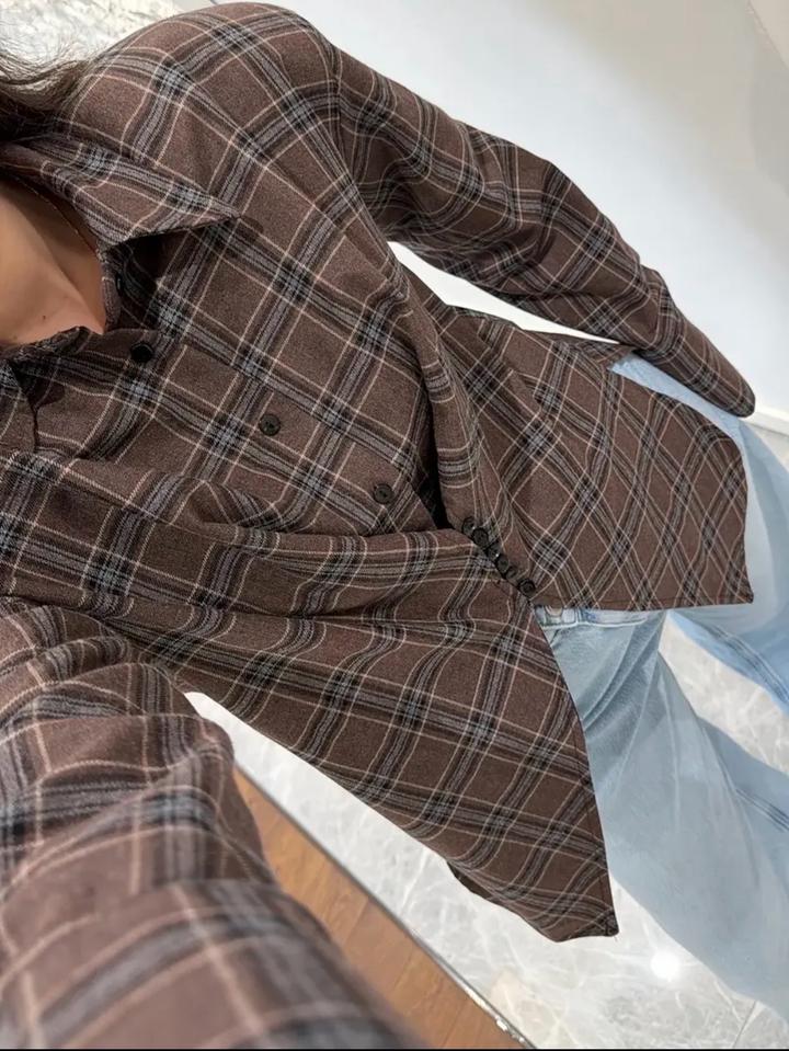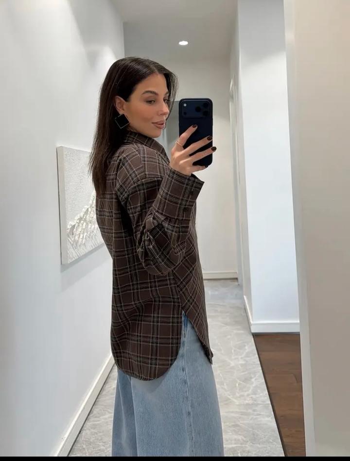 Коричневая клетчатая рубашка неправильной формыM