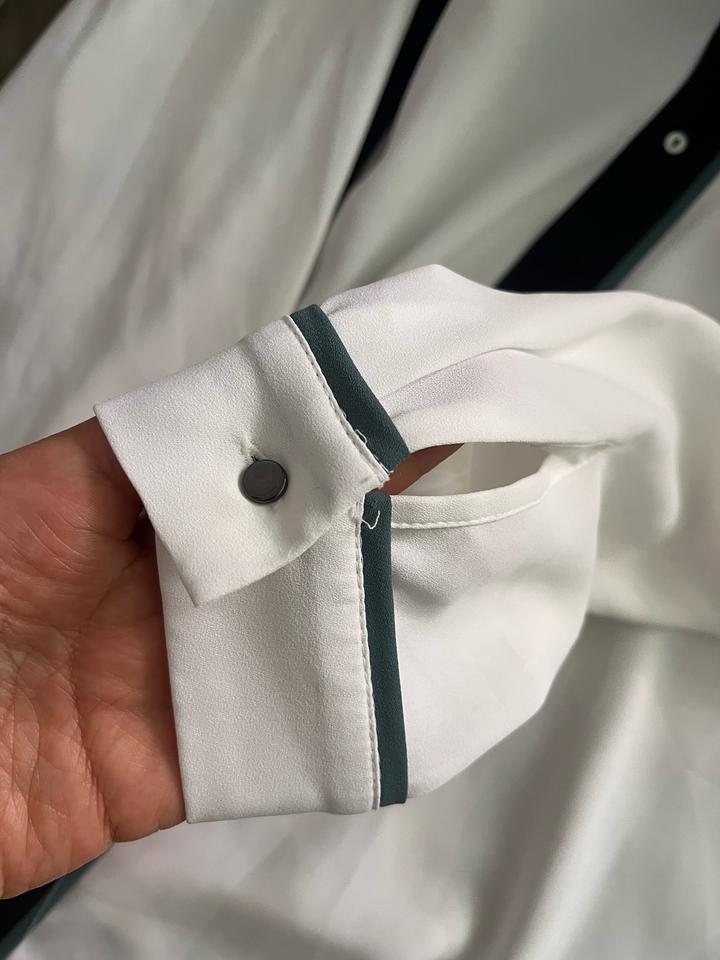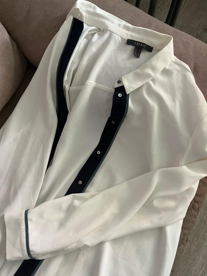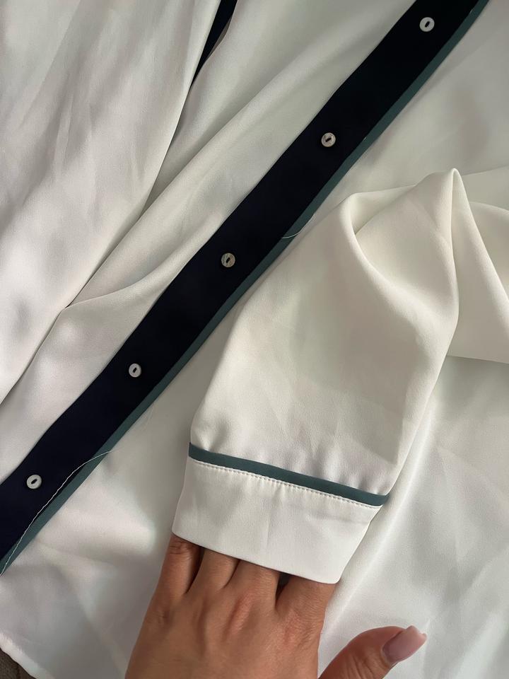 белая рубашка (блузка) бренда Esprit с контрастной тёмно-синей планкой и окантовкой Артикул: 576065