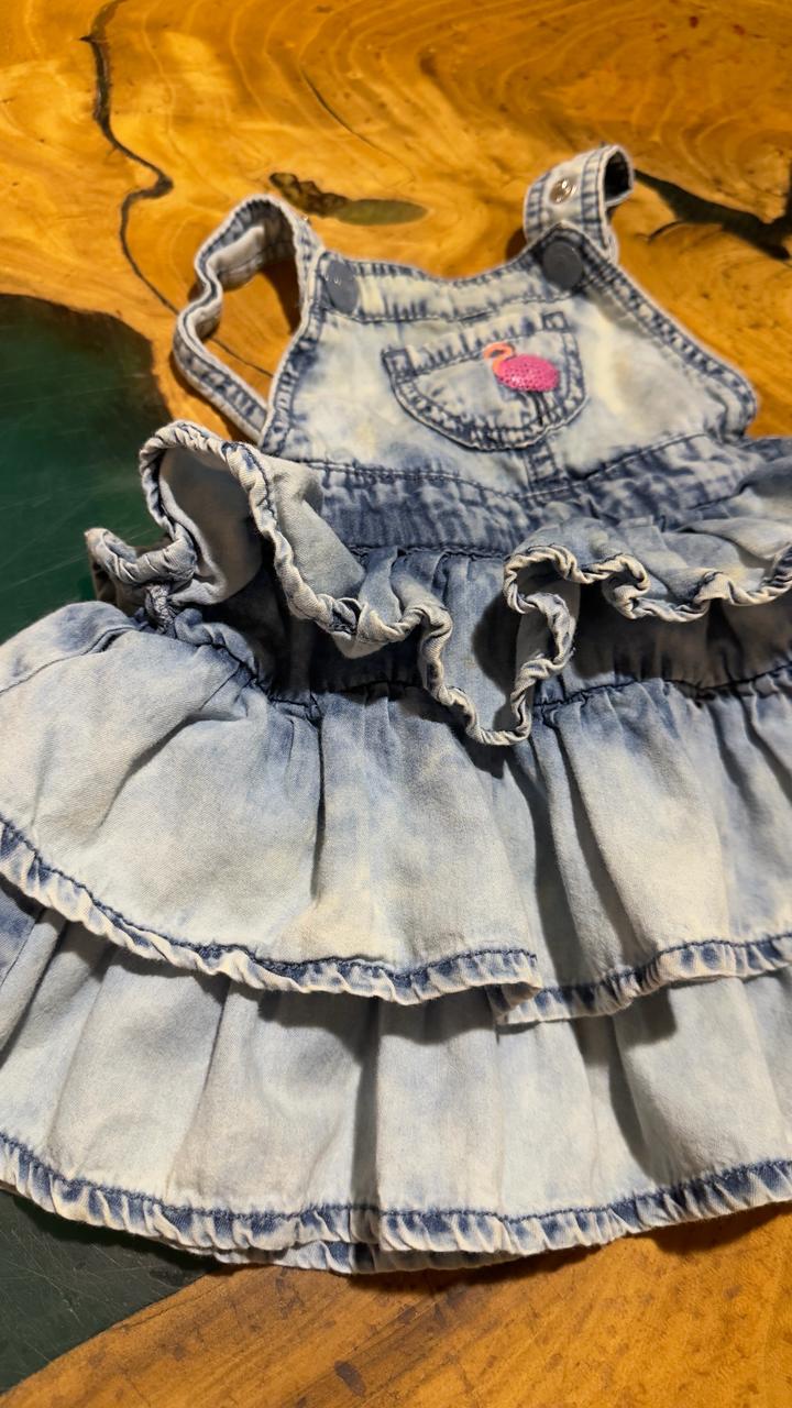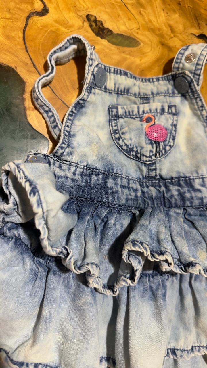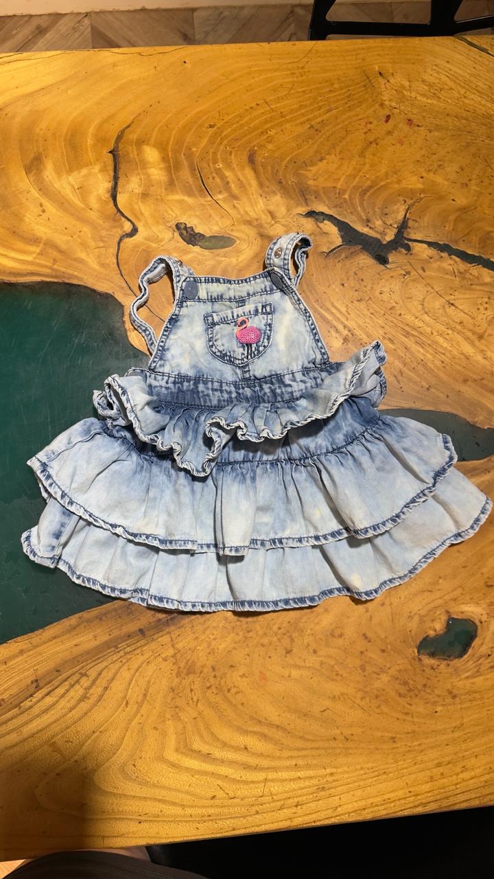 Джинсовый сарафан, невероятно милый и красивый. одевался несколько раз. Есть пятнышки желтоватые, но они, наверное, отстираются не эко порошком))) Артикул: 576082