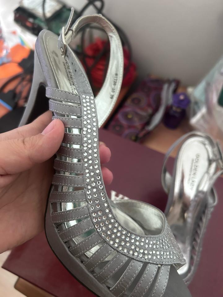Туфли на каблуках. 39 размер, в отличном состоянии. Серебренного цвета. Могу отправить с коробкой. Без бренда. Выбрать только казпочту, так как другие (сдэк, тез) далеко от дома. Артикул: 576135