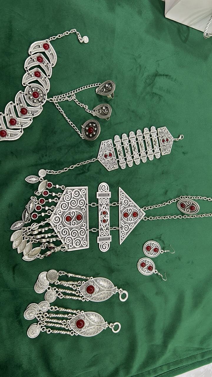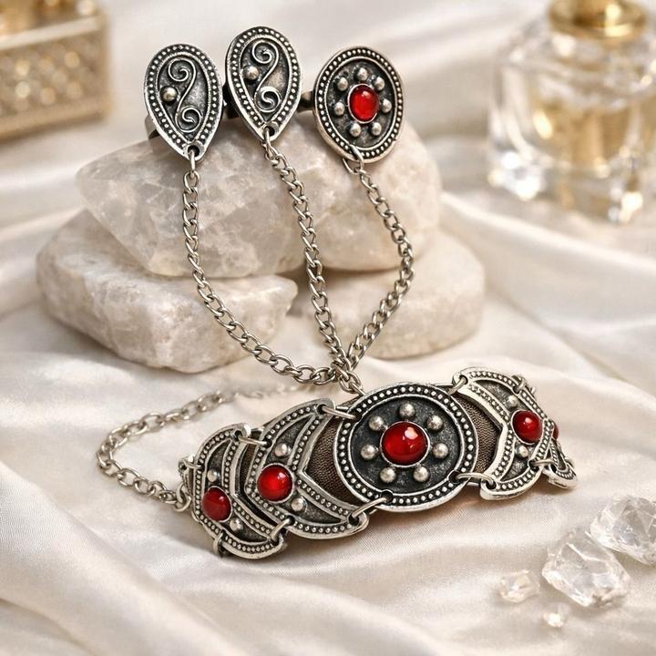 Этно-набор серебро 30% + сталь 70%. Не чернеет В составе: өңіржиек, сырға, бесбілезік, сақина, шашбау, білезік. Ручная работа, сделано в Турции Артикул: 576174