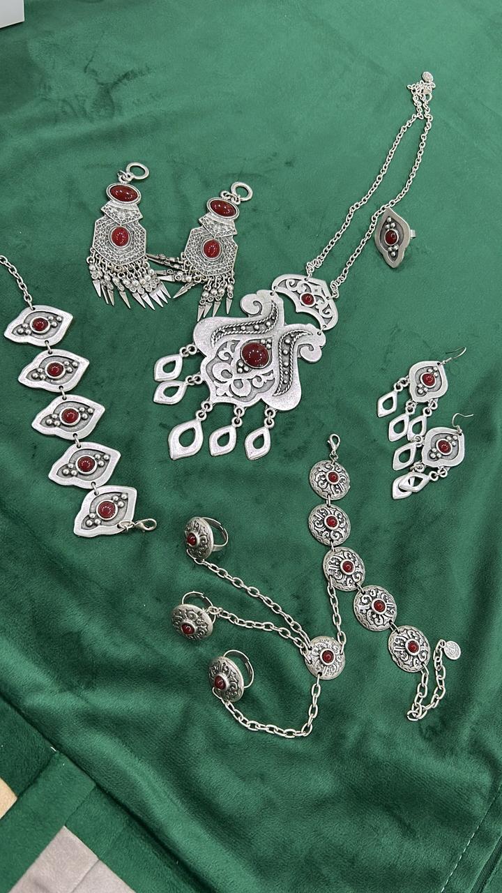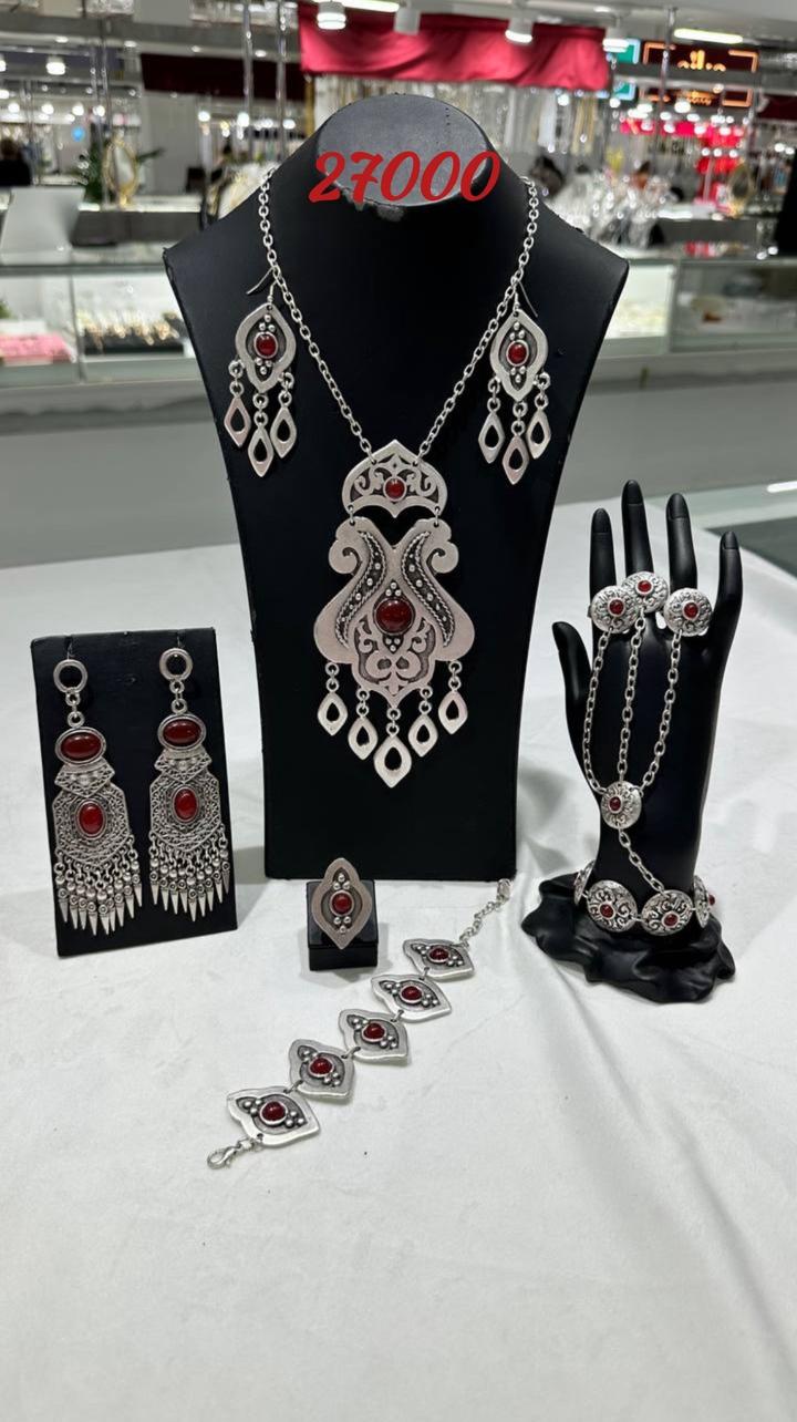 Этно-набор серебро 30% + сталь 70%. Не чернеет В составе: өңіржиек, сырға, бесбілезік, сақина, шашбау, білезік. Ручная работа, сделано в Турции Артикул: 576182