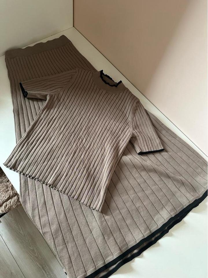 Очень красивый и современный комплект. Сидит идеально по фигуре, подчёркивает силуэт и выглядит аккуратно и стильно. Материал приятный к телу, мягкий и комфортный для повседневной носки. Можно носить как вместе, так и отдельно — легко комбинируется с другой одеждой.Состояние отличное, как новый 👍 Артикул: 576201