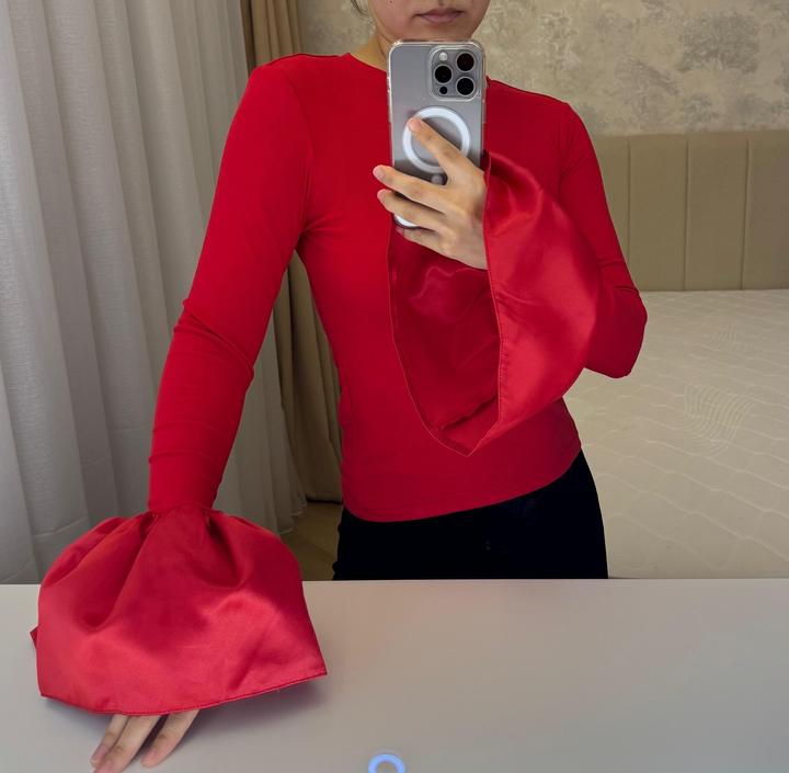 Яркий красный лонгслив, который добавит нотку драматизма в ваш гардероб. Главный акцент модели — эффектные пышные рукава-фонарики из атласа, которые создают стильный объем и контраст с облегающей трикотажной основой. Это идеальный выбор для тех, кто хочет выглядеть женственно и притягательно. Модель отлично впишется как в повседневные образы с денимом, так и в более нарядные комплекты✨ Артикул: 576215