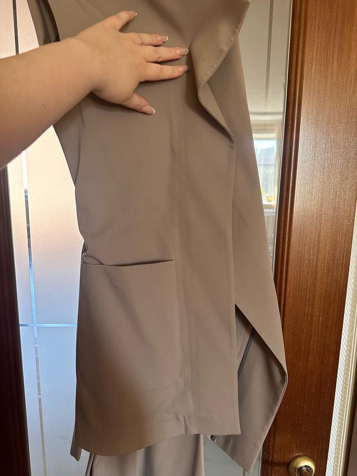 Бежевый костюм,бежевая двойка с поясом,сидит очень классно,летний вариант,классика.С рубашкой красота,с футболочкой красота,с майкой супер секси красота🔥Причина продажи-хозяйка выросла в размерах) Артикул: 576246