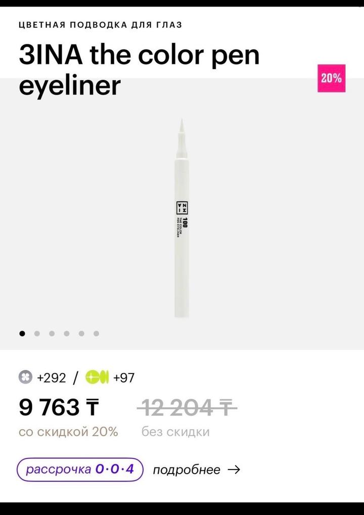 Белая подводка 3INA позволяет рисовать яркие и насыщенные, но при этом аккуратные и стойкие стрелки. Точное и удобное нанесение, матовый финиш, водостойкая формула, который продержится в течение 14 часов. Абсолютно новая. Куплена в ЗЯ. В магазине стоит 9800 со скидкой. Артикул: 576298