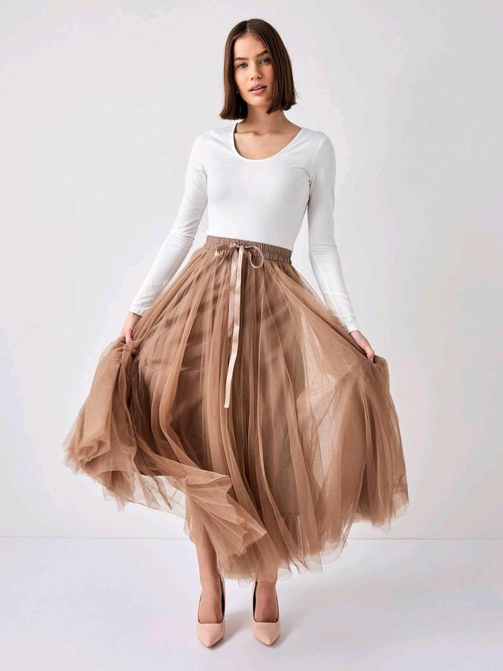 Продам дорогую юбку модели Aislynn Tulle Skirt от Sunday Sparks, юбка новая по ней визуально видно! Стоимость официального сайта 250$ Юбка создана с исключительной любовью к женщине, имеет идеальное лекало и пошив! Особенности модели: Юбка Aislynn отличается большим количеством фатина (более 11 метров) на пошив! На резинке, спереди ленточная завязка! Длиной глубокого миди! В благородном цвете сливочного шоколада! Юбка весезонна! Маркировка TU, от 42 до 50 Артикул: 576325
