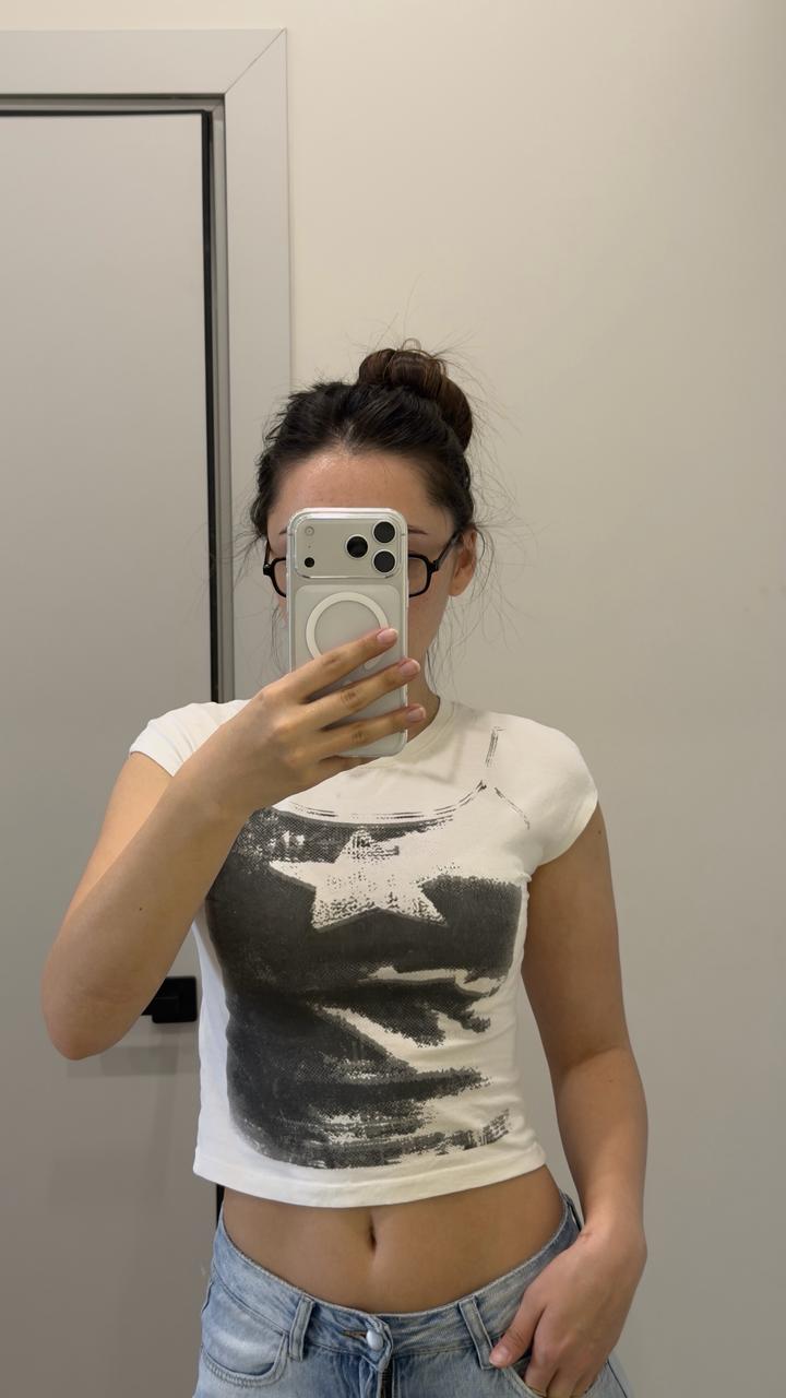 стильная укороченая футболка. мой размер С-М , на мне сидит как на фото Артикул: 576327